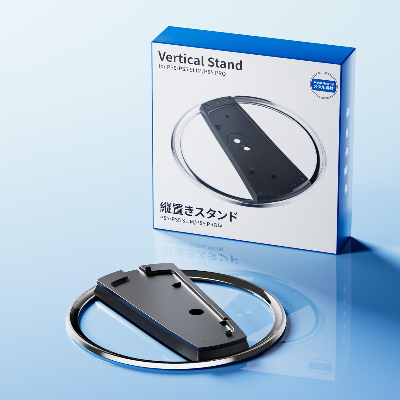 【PS5/PS5 Slim/PS5 Proスタンド】PS5 Slim Disc&Digital / PS5 Disc&Digital / PS5 Pro用の縦型ドックスタンドです。底面には滑り止めのシリコンリング、本体固定用のネジが付属。これにより、PS5コンソールへの意外なぶつかりによる落下を防止し、コンソールを安定した位置に維持します。