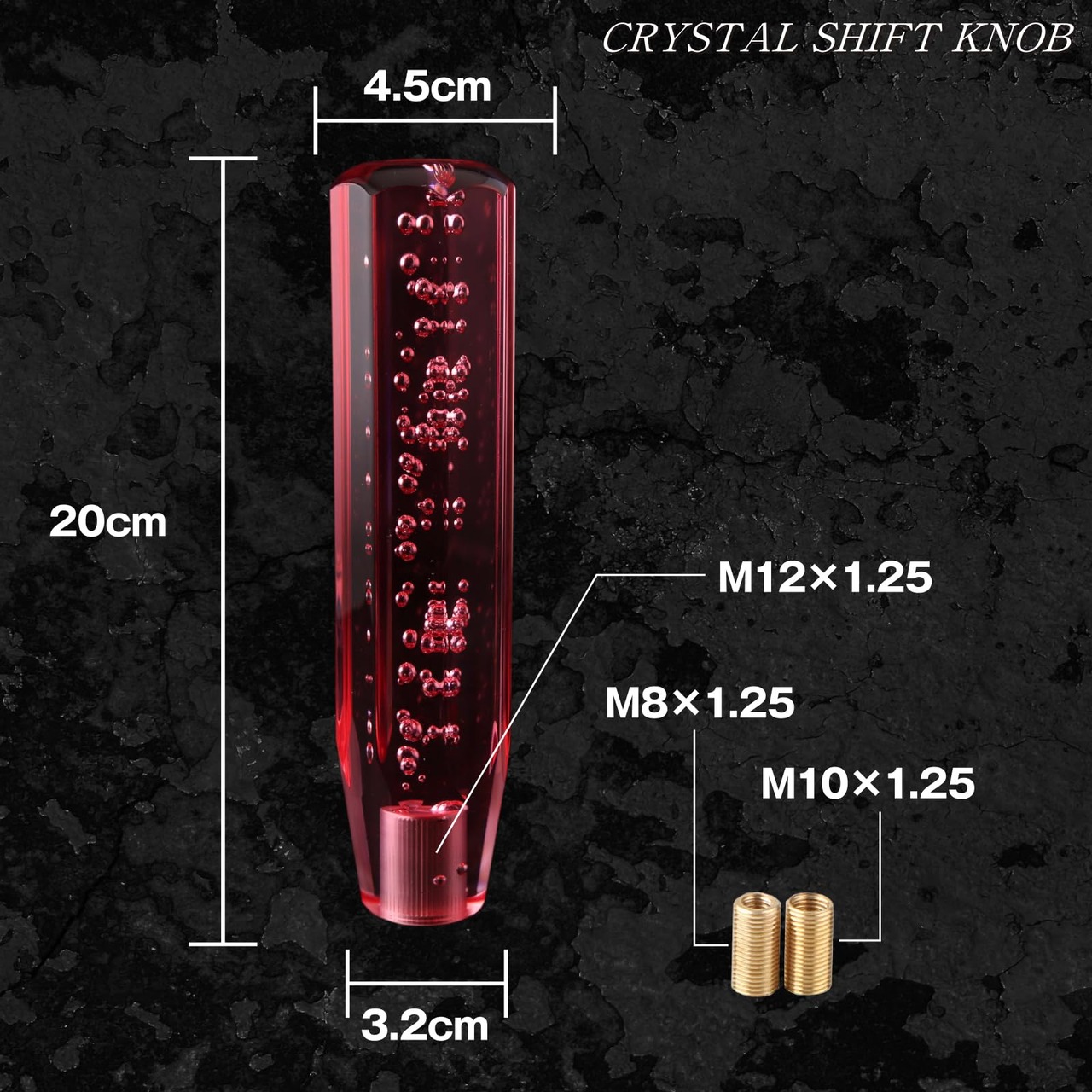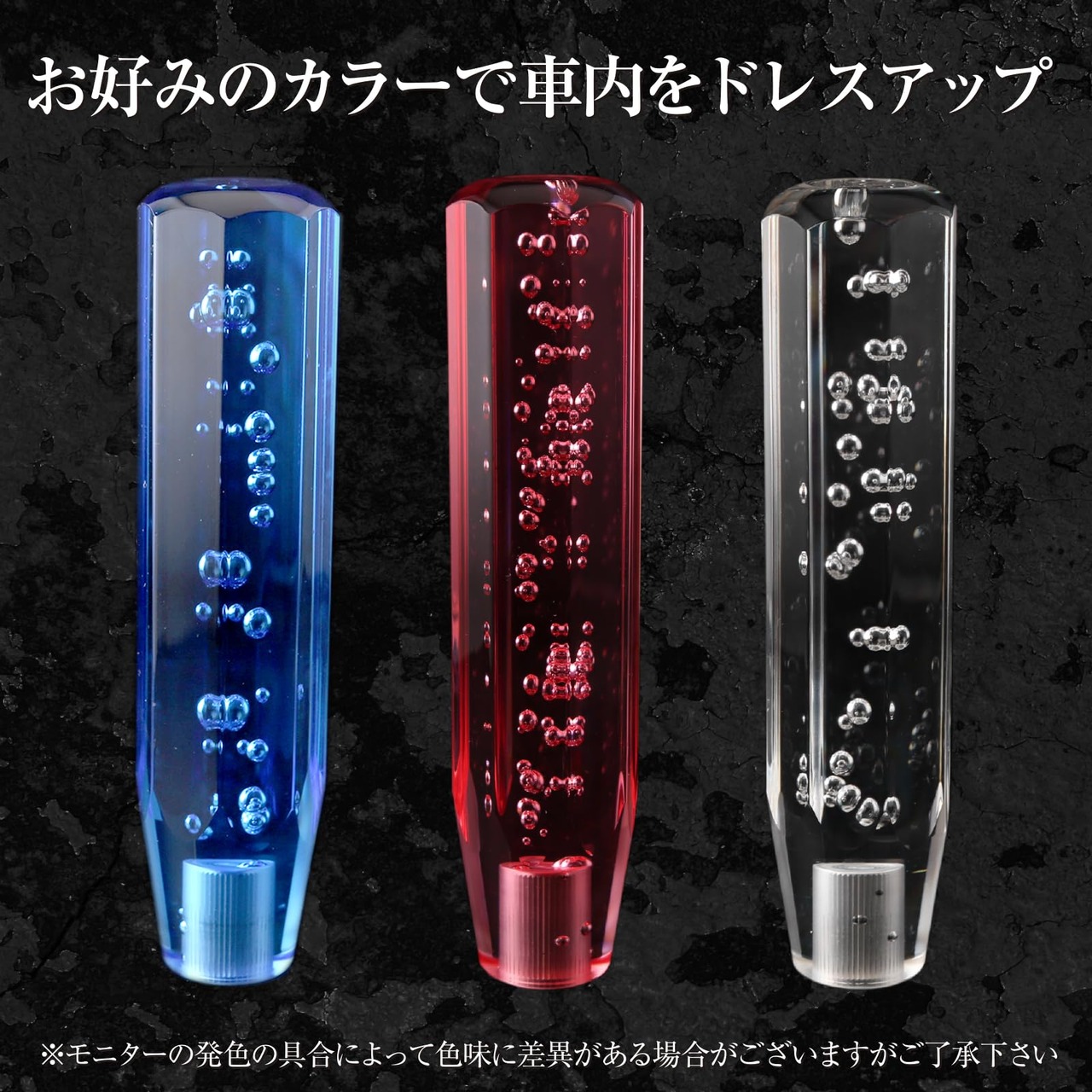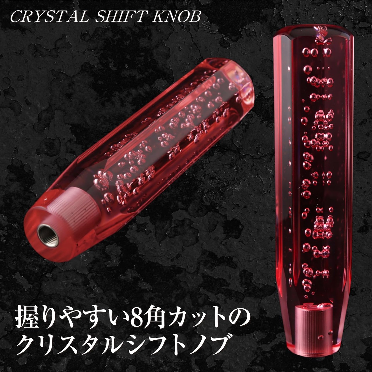 RYASHOP クリスタルシフトノブ シフトノブ 泡入り ロング 20cm 汎用 アダプター付き レッド 赤 バブル 八角 AT MT