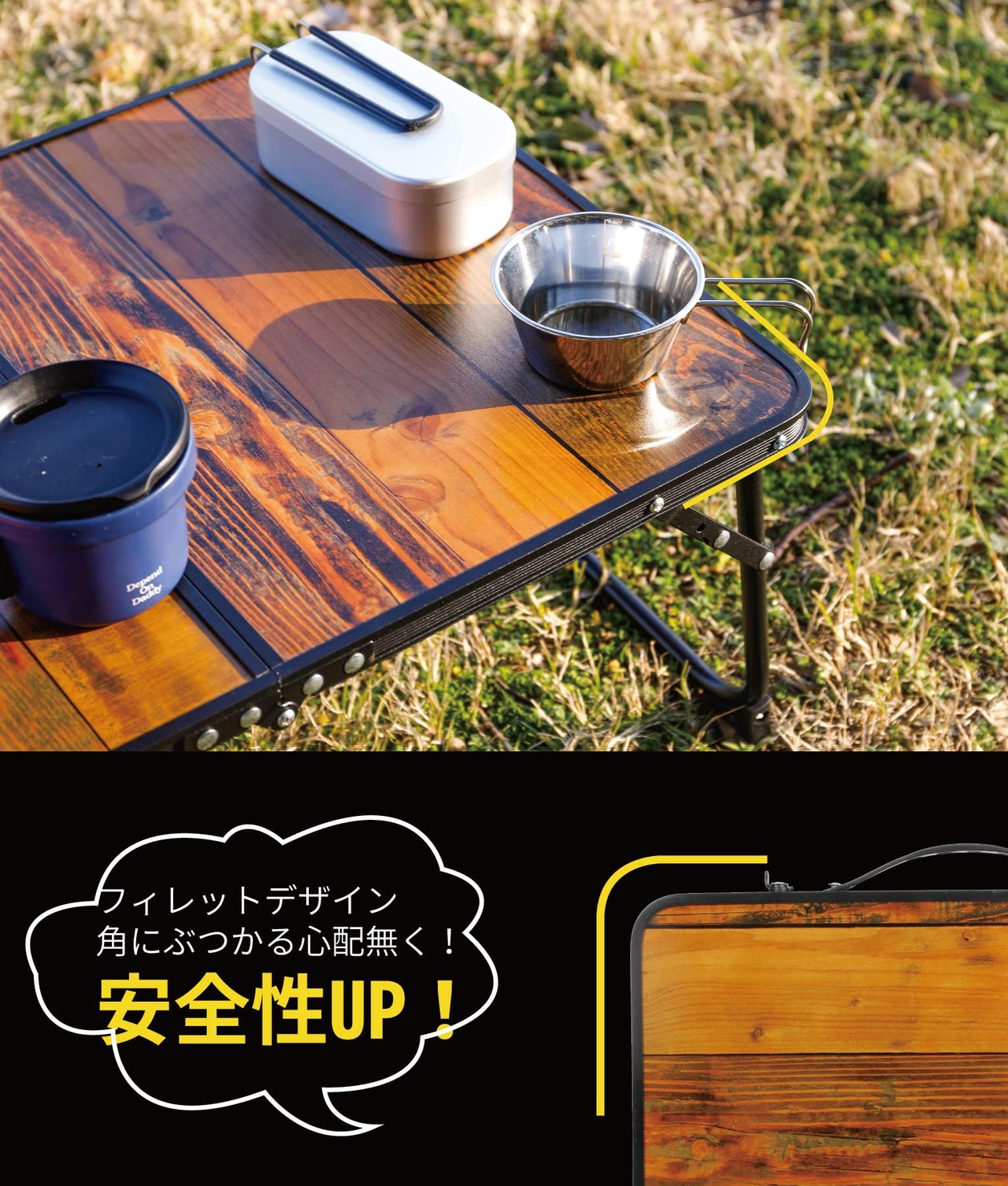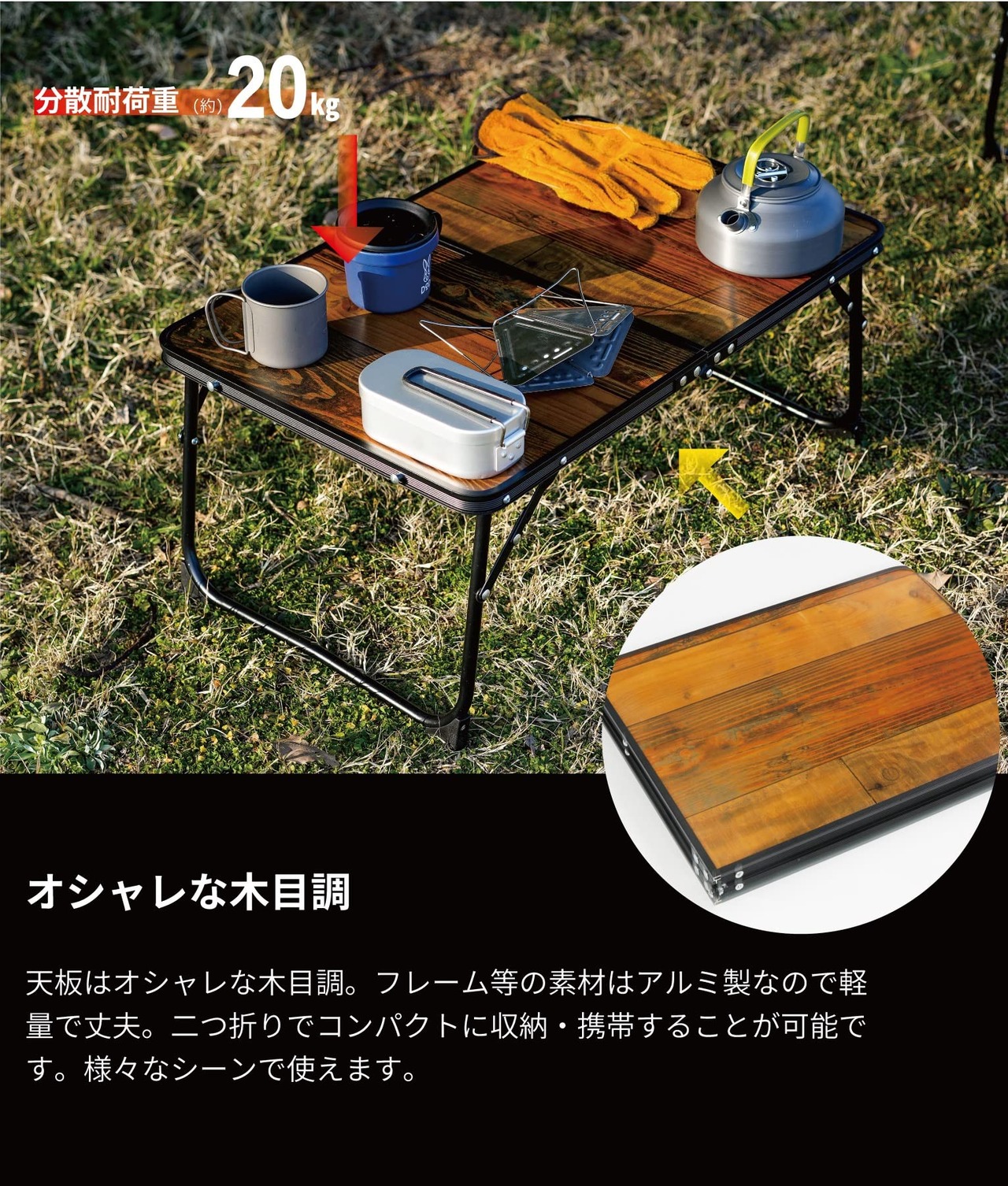 YOLER キャンプテーブル 折りたたみ テーブル アウトドア ピクニック ロータイプ 机 アルミ 軽量 コンパクト レジャー ソロ キャンプ お花見 バーベキュー 運動会 行楽 bbq おしゃれ 61×41cm (木目調(収納袋なし))