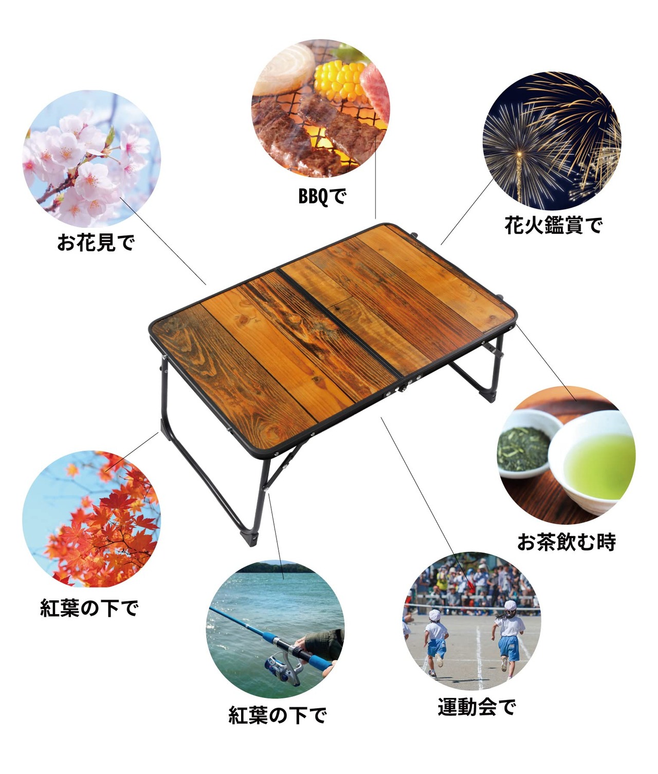 ☆軽いですが耐荷重30kg!テーブルとして食事に使うのははもちろん、ちょっとした荷物置きにも。ピクニック、花見、運動会、釣り、登山等のアウトドアでは、料理や飲み物が置けるちょっとした台があると、便利。