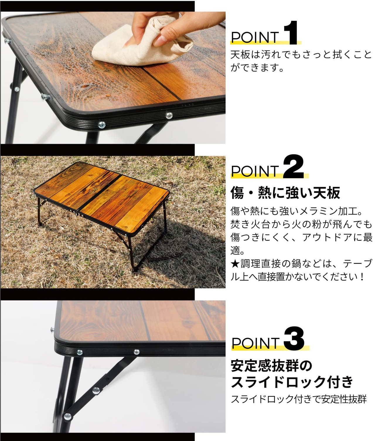 ☆テーブルのフレームは軽量なアルミ製で、天板はメラミン樹脂化粧中密度繊維板製なので、重量はわず1.26kg、女性や子供でも手軽に持ち運べます。汚れや錆びにも強いので、お手入れも楽々です。汚れてもさっとふき取るだけでOKです。アウトドアシーンでも安心して使えます。
