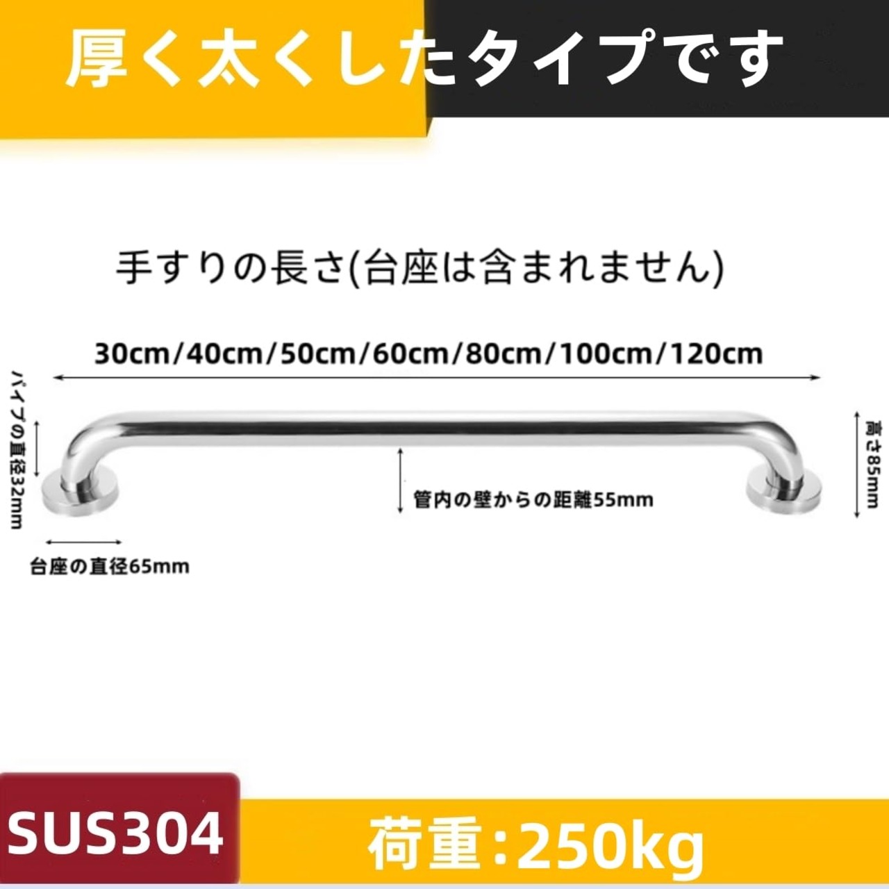 手すり お風呂 手すり 階段用 手摺り 壁掛け 手すり ステンレス製手摺り 30-500cm ステンレス製手摺 荷重250kg 廊下いたわりシンプル モダン 玄関 浴室 風呂 屋外 屋外室内兼用てすり (80cm/31.5in)