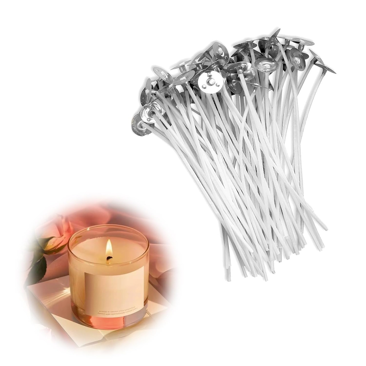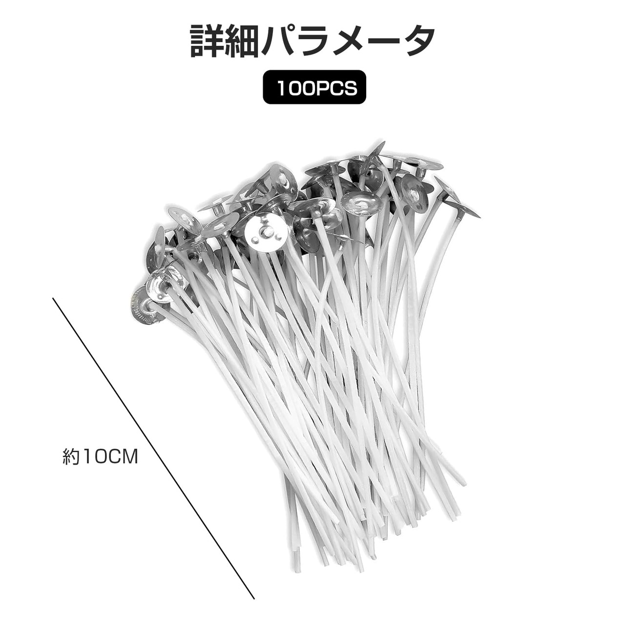 [パッケージ内容]:100pcs 10cm ホワイトキャンドル芯(ベース付)個性的なアロマキャンドルや工芸品を作るのに十分で、満足感のある体験をしてくれます。