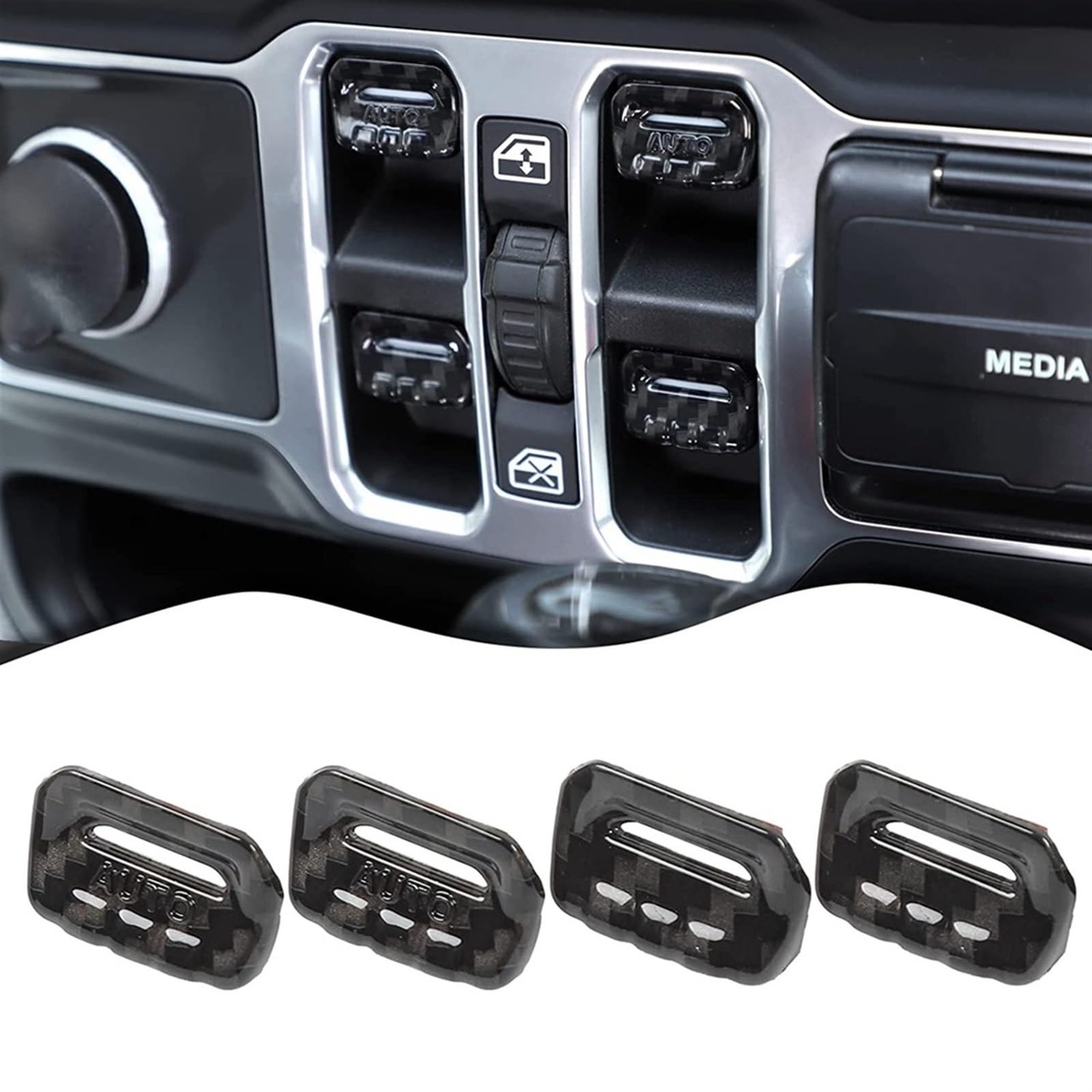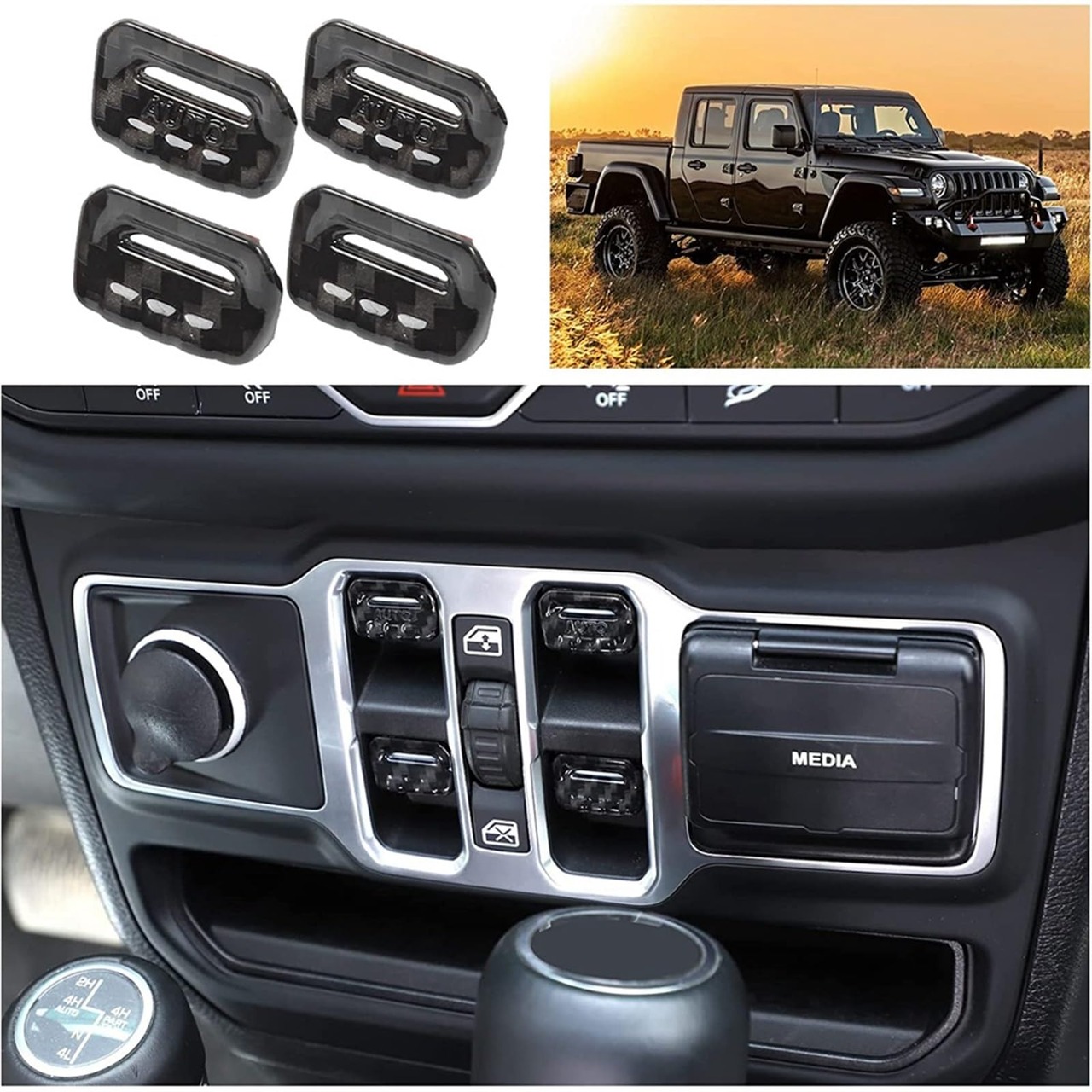 車のウィンドウスイッチボタンカバートリムインテリアアクセサリー ジープ ラングラー JL グラディエーター JT 2018-2021 に対応 (ABS カーボンファイバー)
