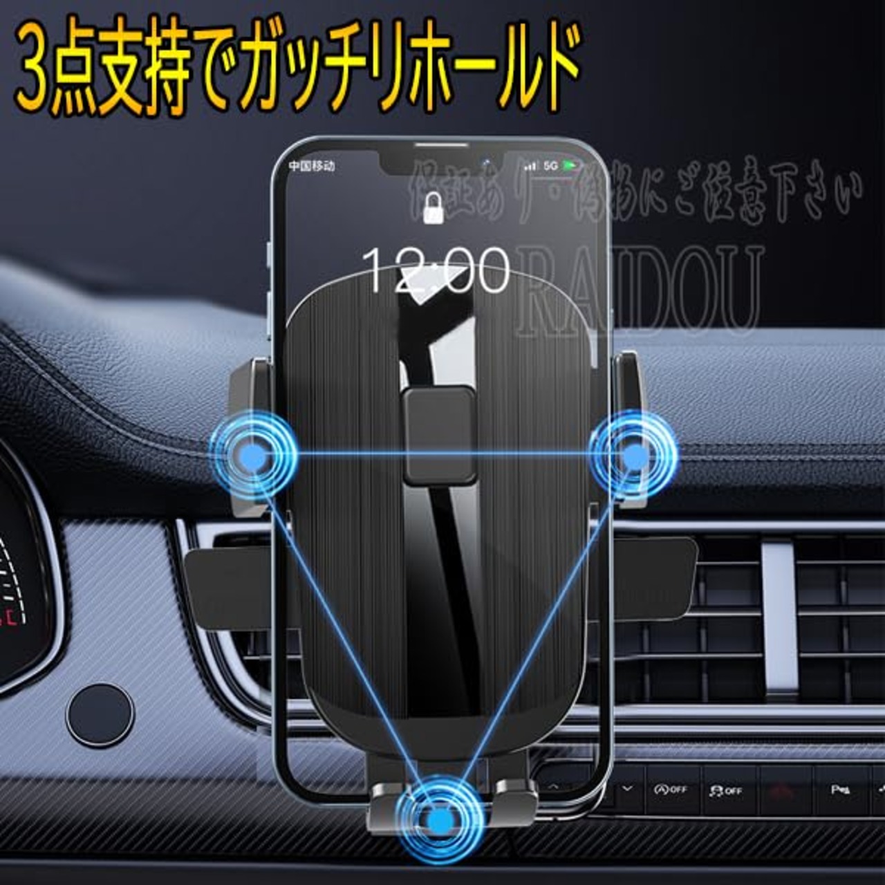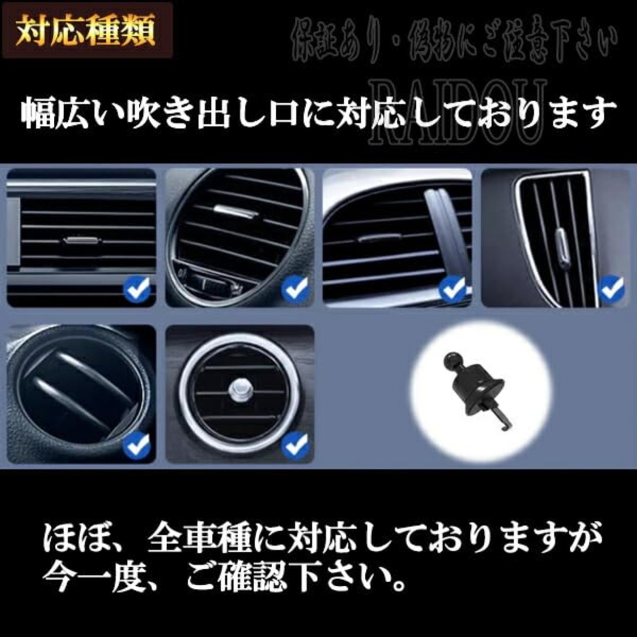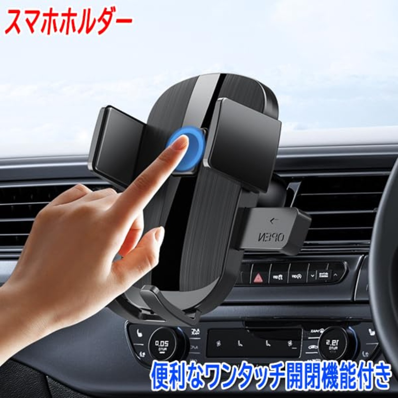 スマホホルダー エアコン 吹き出し口用 ワンタッチ開閉 汎用タイプになりますので幅広い車種に対応しております。 ・スマホを押し当てるだけのワンタッチホールド式スマホホルダーです。 ・手帳型ケースにも対応。 ・サイドレバーを少し押すだけで、スマホの取外しが可能です。 ・ホルダー部は360°回転ボールジョイントで縦横置き対応。お好みの角度に調整が出来ます。
