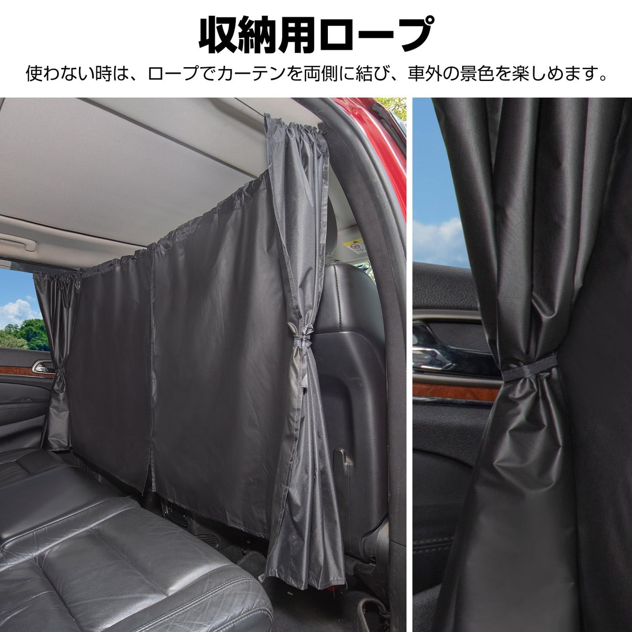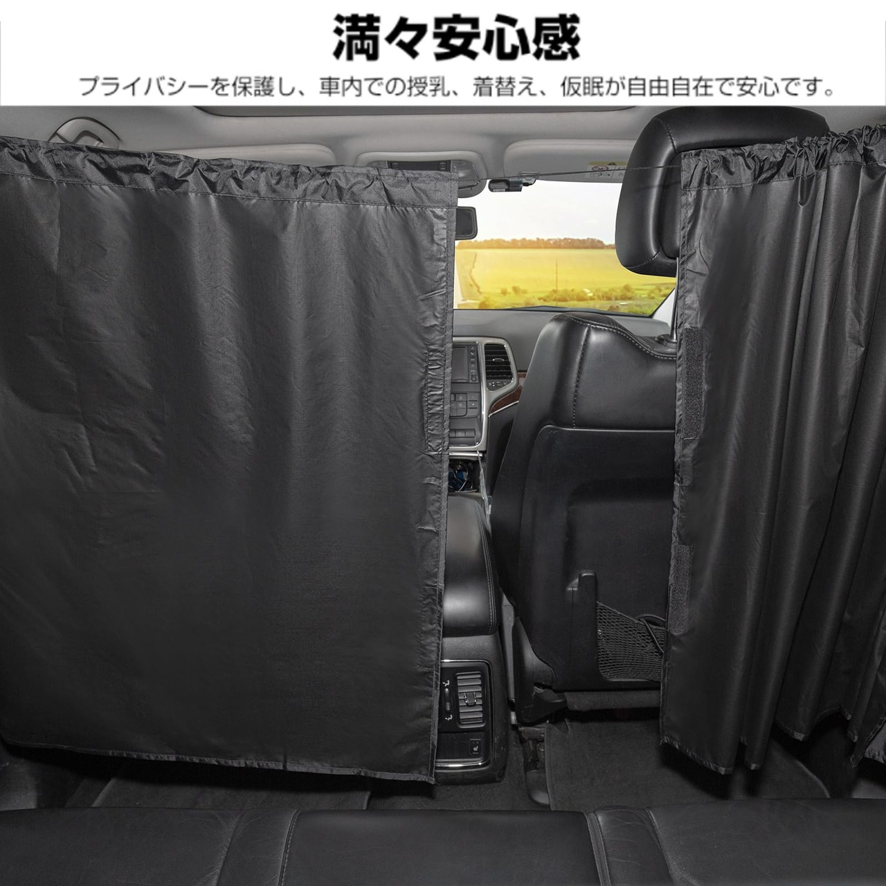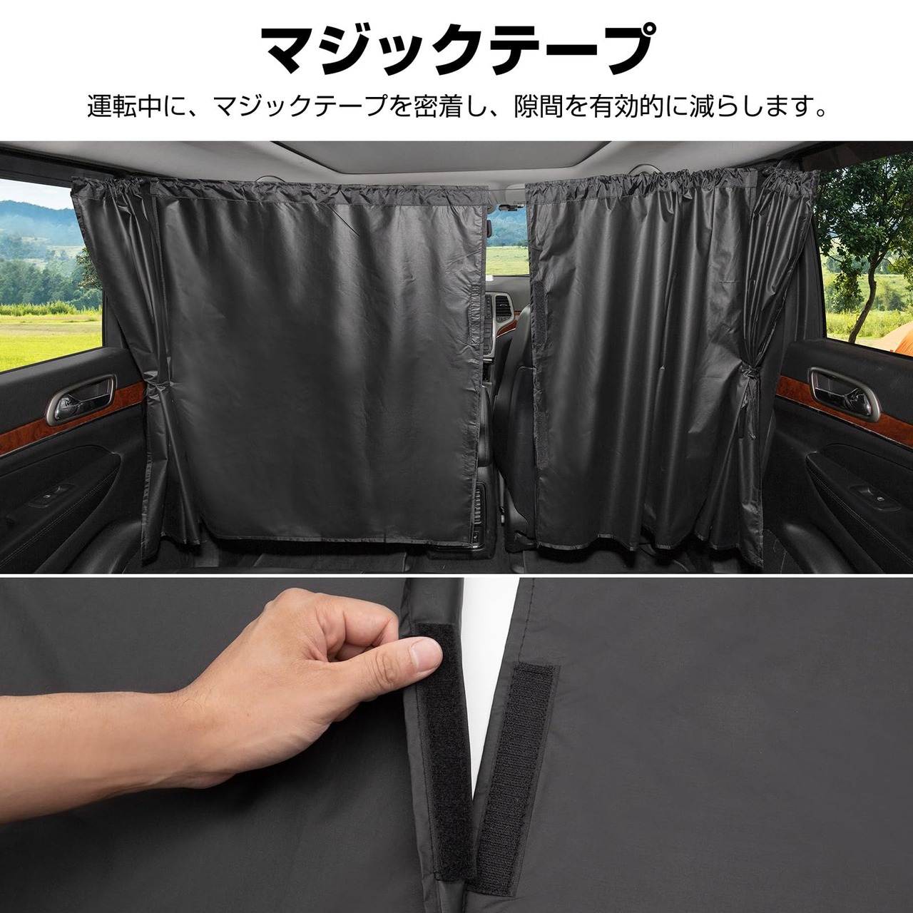 車 カーテン 遮光99.99% 車中泊用 プライバシー保護 紫外線対策 車内仮眠に最適 前席と後席を間仕切れる