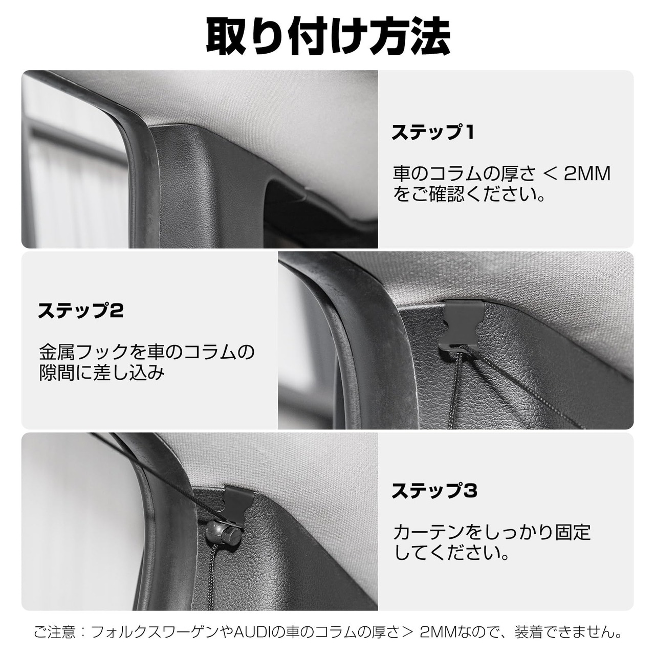 【遮光1級】厳しい遮光試験をクリアした車 カーテンが登場!市販品の多くが光漏れの問題を抱えていたため、この問題を解決するために本製品の厚みを厚くすることで、光を遮断するだけでなく紫外線もカットすることができました。 車内では、車外に邪魔されることなく、好きなことをすることができます。
