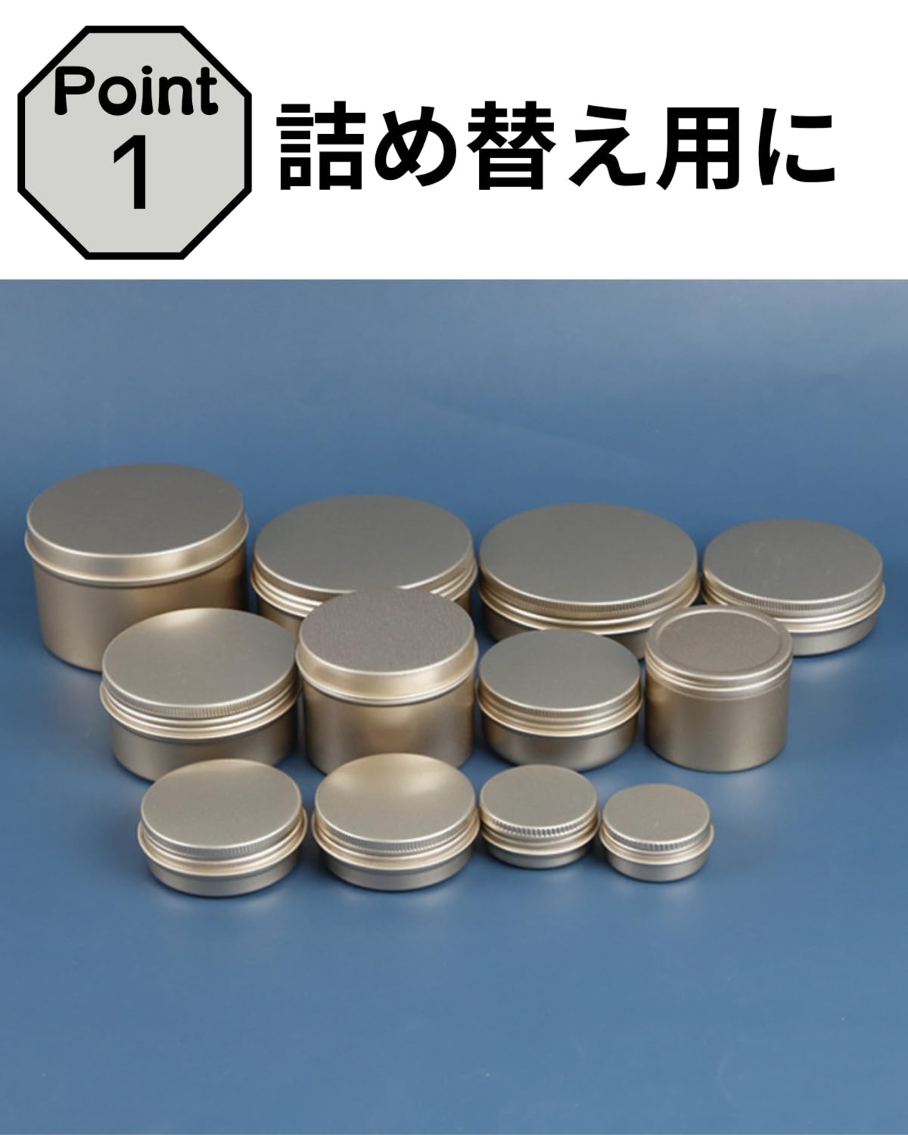 ✅【詰め替え用に】小物の保管や小分けに便利なアルミ缶です。クリームなど様々なものを小分けにできます。プレゼント用にも最適です。