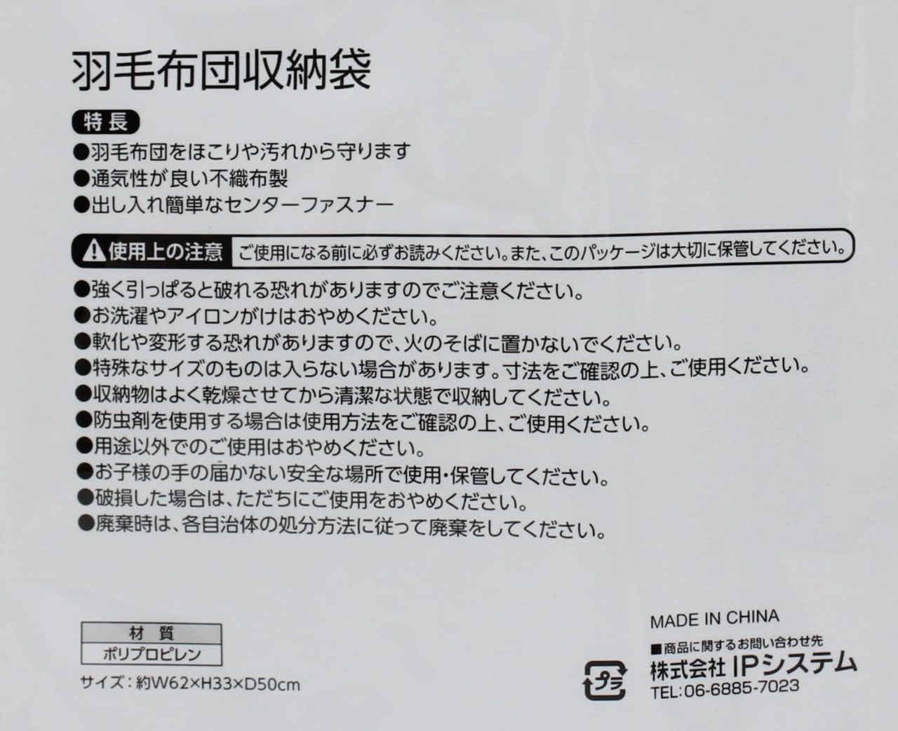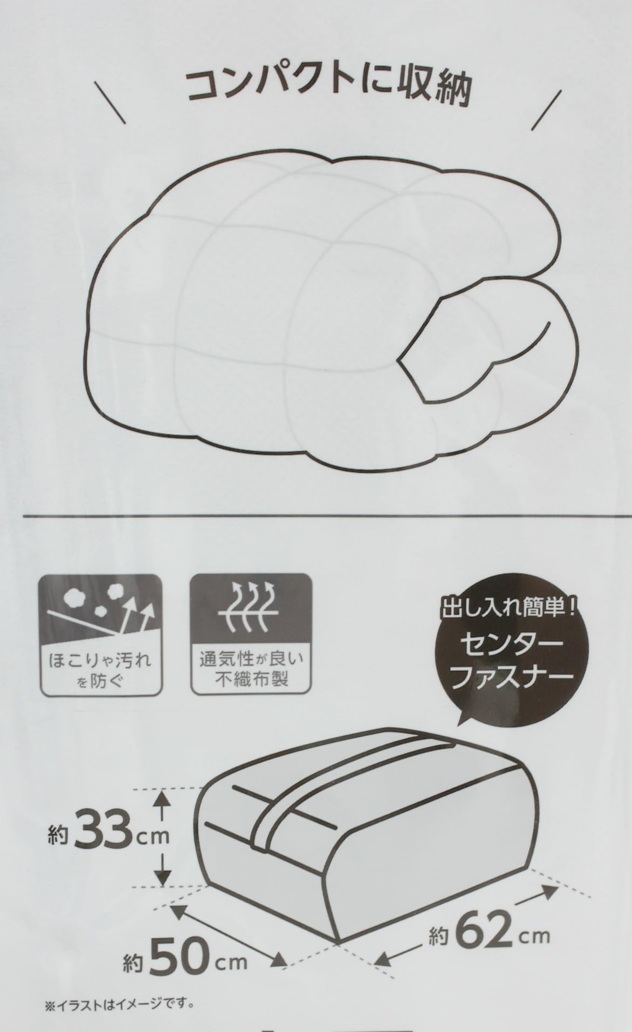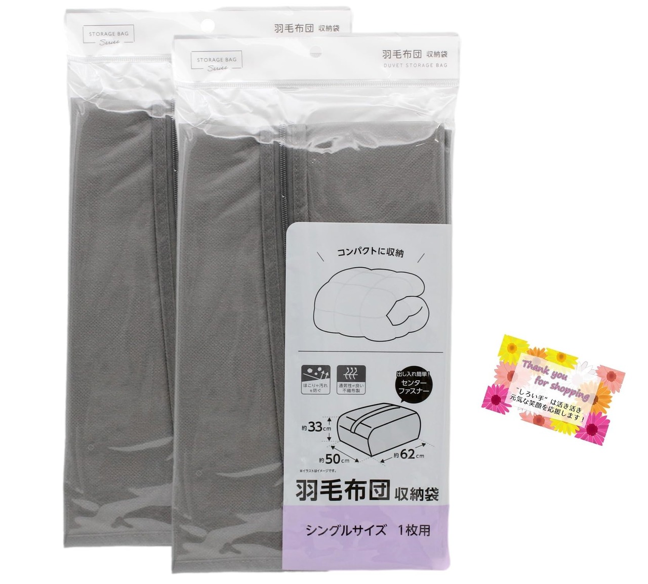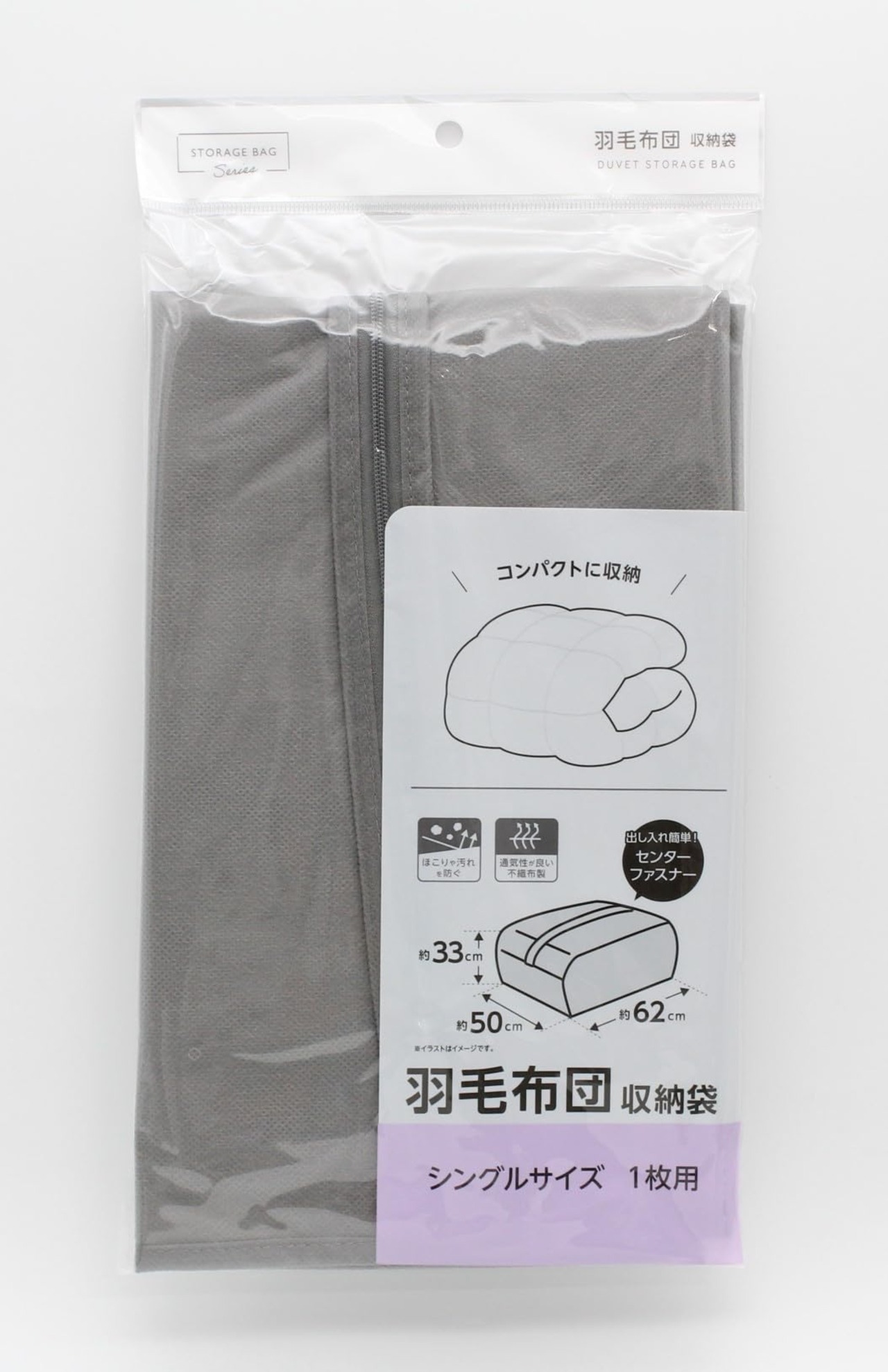 【出し入れ簡単 センターファスナー】 羽毛布団収納袋 ほこりや汚れを防ぐ 通気性が良い不織布製 シングルサイズ1枚用 【2個セット】