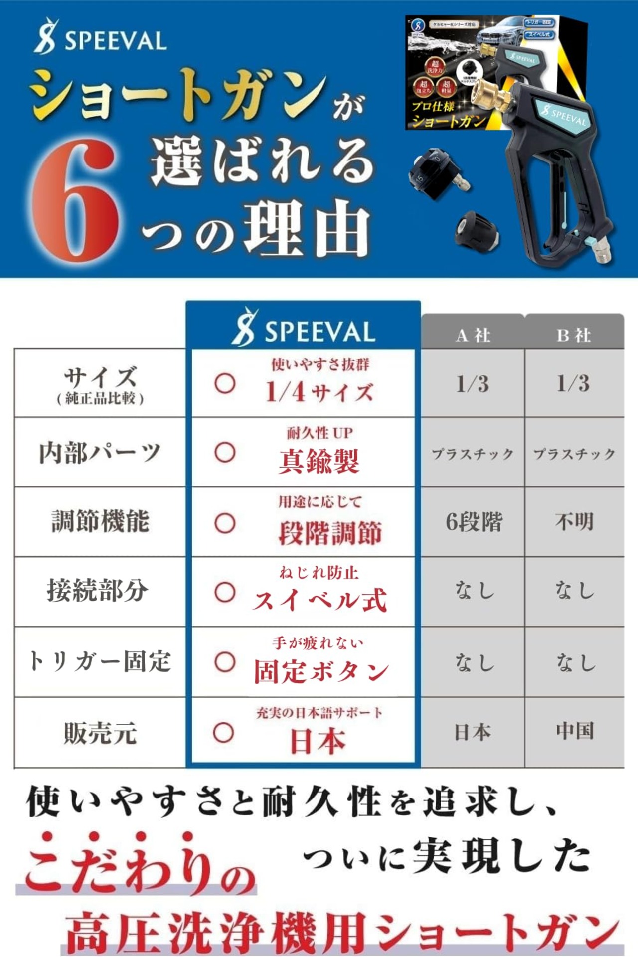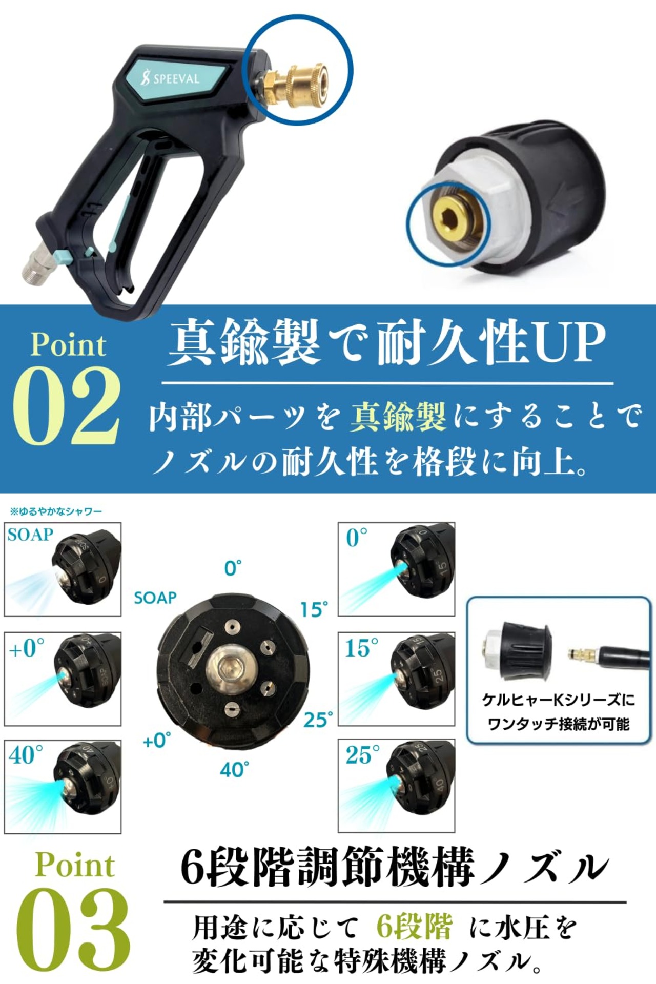 SPEEVAL ショートガン【2025年最新型】高圧洗浄ノズル スイベル付き トリガー固定 ケルヒャーKシリーズ クイックコネクトに対応 6段階マルチスプレー付属 フォームガン 真鍮製 洗車