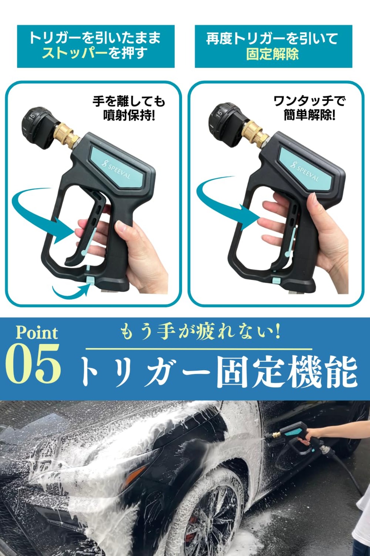 ✅【 高耐久力を持つ真鍮製 】 本体内部は錆びにくくて密封性が良く、他社製品のプラスチック製と比べて耐久性と洗浄力に特化しています。✅【 安全ロック&耐久性 】 誤って操作した時の水しぶきを防ぐために、トリガーロックが搭載されています。最大5200PSIの圧力に耐えることが可能。
