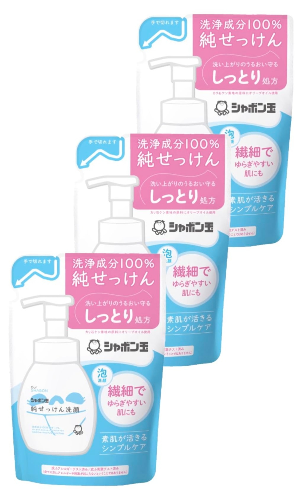 シャボン玉 純せっけん洗顔 泡タイプ つめかえ用(180ml)×3