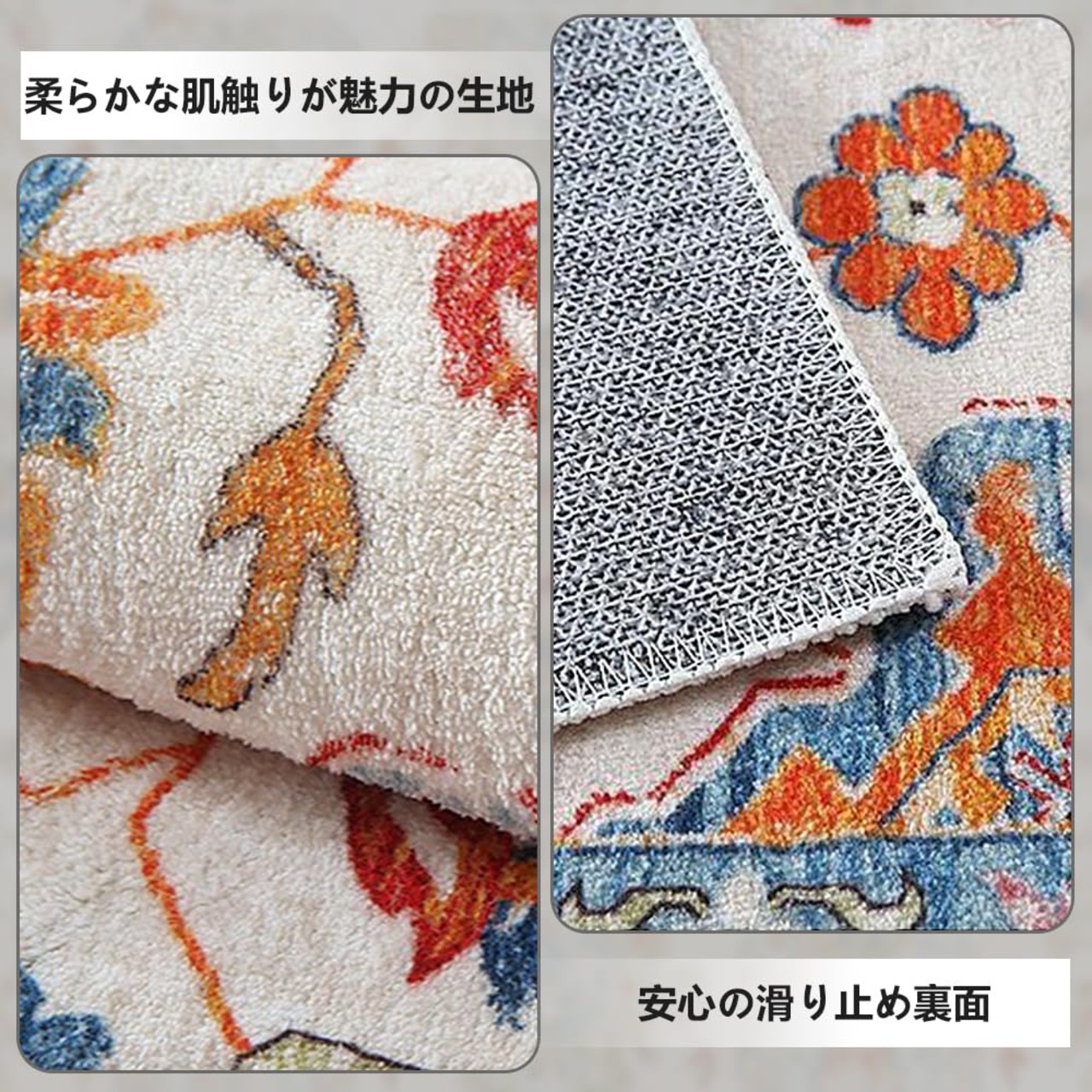 オールシーズン活躍:毛足の長さは、長すぎると肌に張り付いたりするものですが、こちらのラグの毛足は約8mmと短め。なめらかな肌触りが心地よく、一年中活躍してくれます。