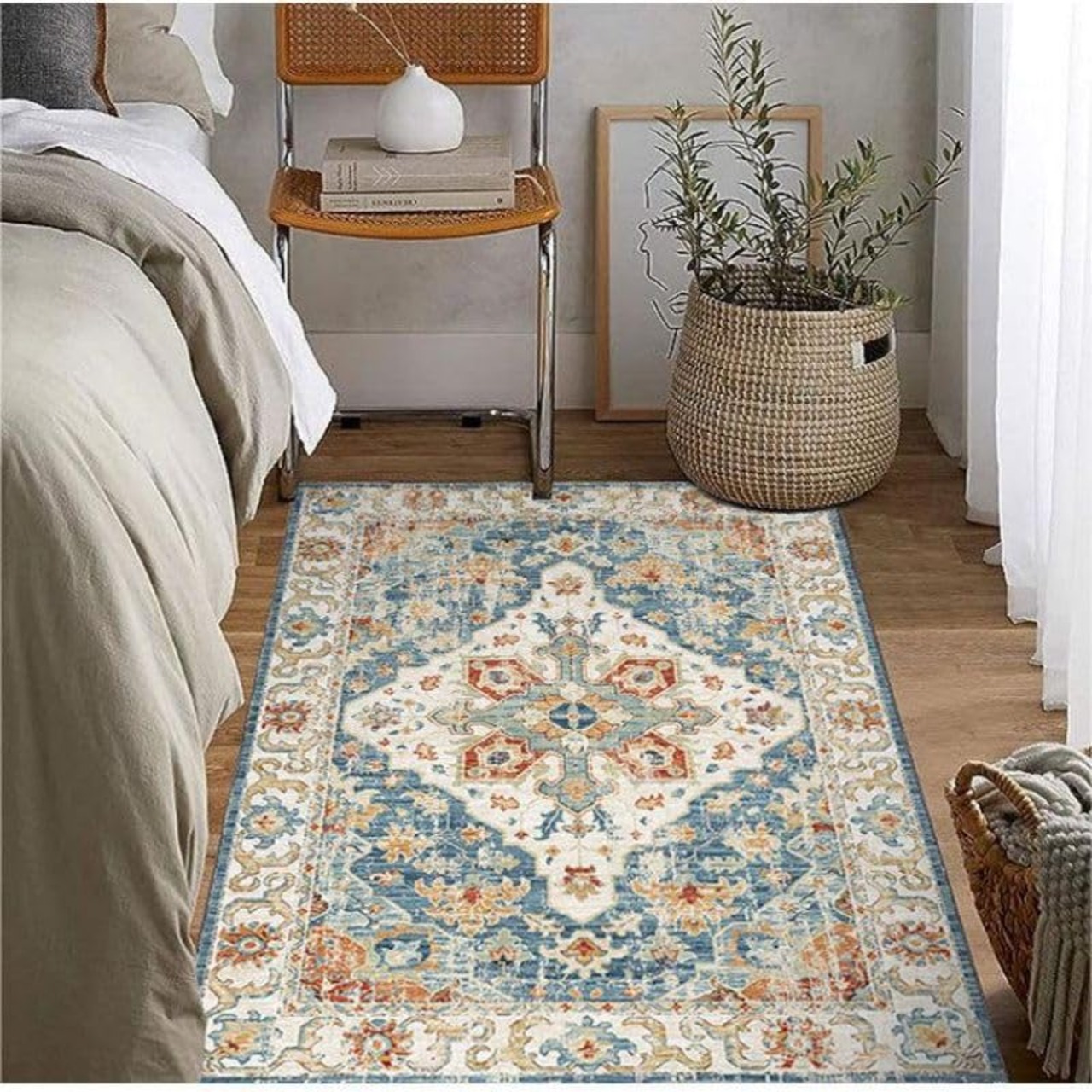 【Amazon.co.jp 限定】ペルシャ風 ラグ カーペット 2畳 3畳 花柄 北欧 厚手 オリエンタル柄 ペルシャ絨毯 じゅうたん 抜けない おしゃれ 滑り止め 洗える 床暖房 オールシーズン適用 低反発 防音マット 軽量 ラグマット 防ダニ 長方形 (blue, 200*250cm)