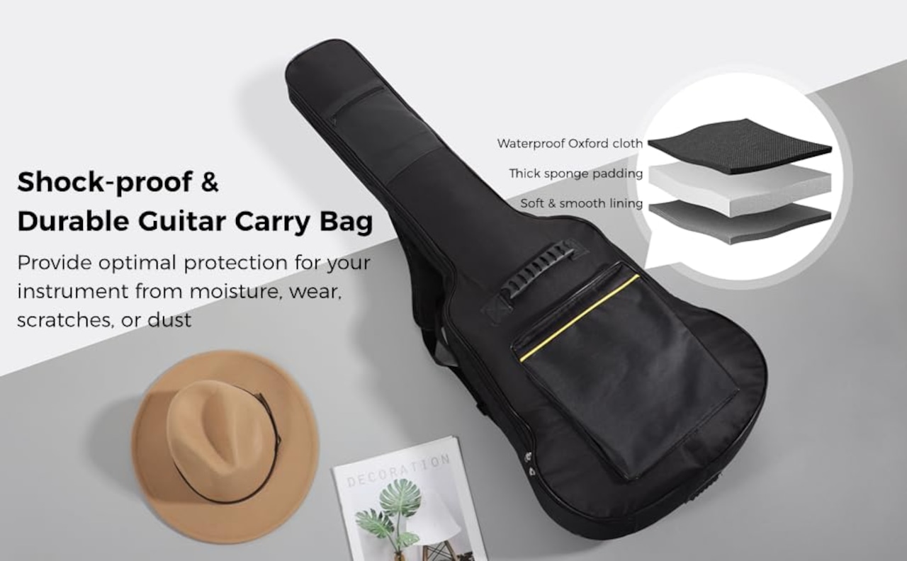 【便利な収納】:ギターバッグの側面とネック部分には小さな収納ポケットがあります。楽譜、ピック、カポ、A4サイズまでを収納可能なメイン・ポケットなどのさまざまなアクセサリーを収納するのに最適で、整理された状態を保ち、必要な時に簡単にアクセスできます。