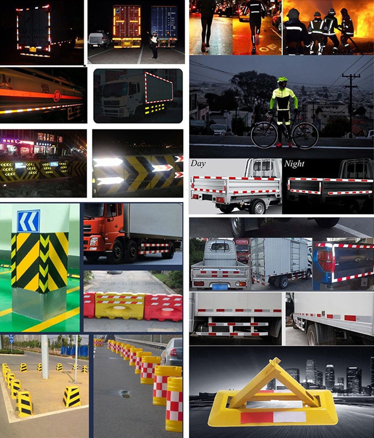 幅広い用途: 反射安全警告テープは、トラック、トレーラー、トラクター、コンテナ、クレーン、ステージ、バリケード、ガレージ、廊下、レターボックス、フェンスなどの輸送、建設工学、農業生産ツールで広く使用されています。