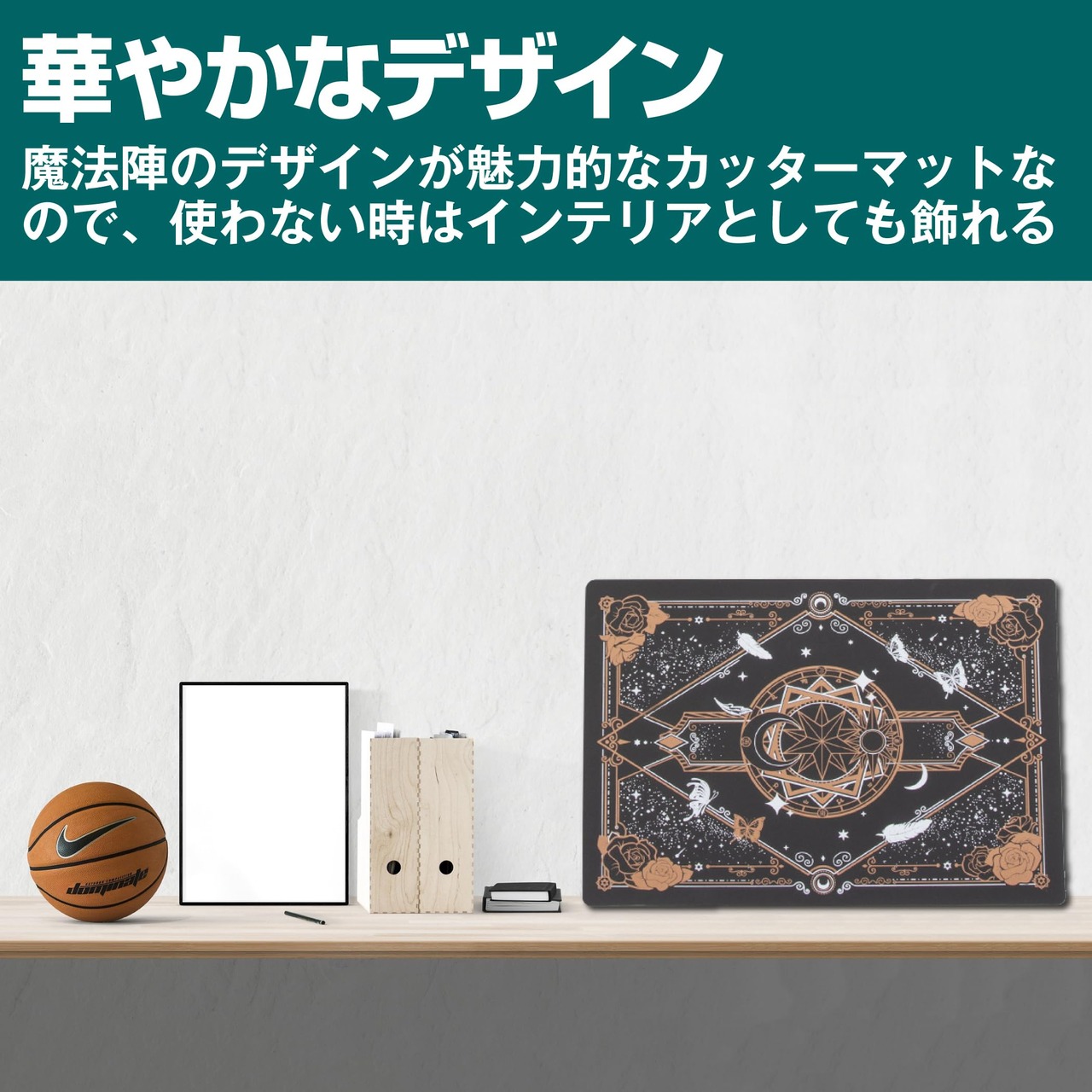 見た目もオシャレ:魔法陣のデザインが魅力的なカッターマットですので、作業環境の見た目を自分好みに整えたいと考えている方にもおすすめです。小学生のお子さんの夏休みの工作などの用途にもピッタリのマットです。