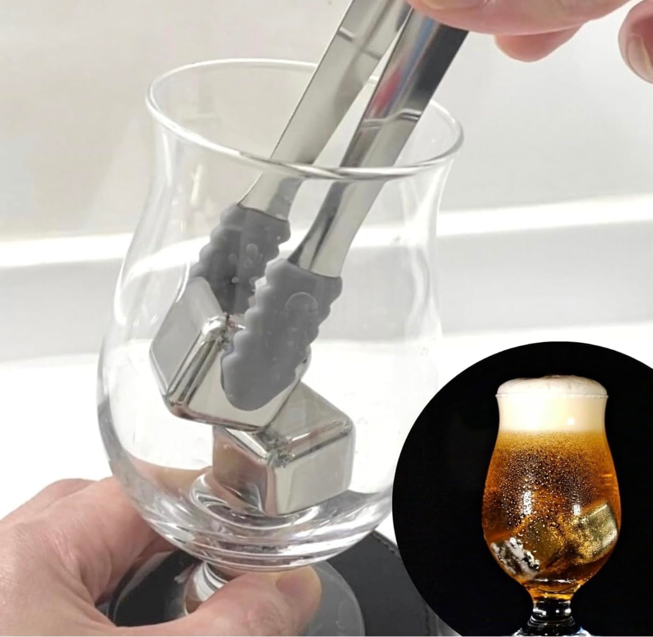 【セット内容】ビアキューブ 6個入(1~2杯分)| 保管ケース|トング|説明書|180日間保証書|二重真空タンブラー