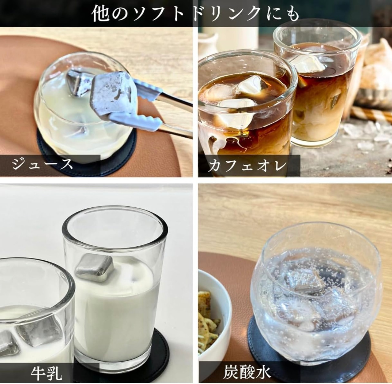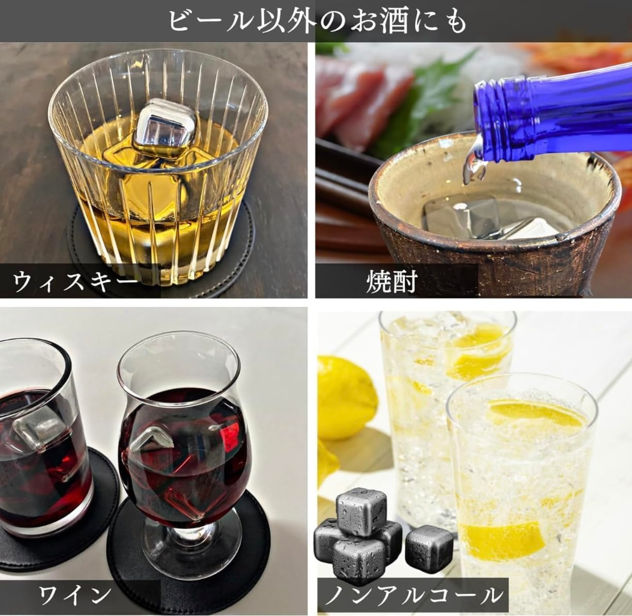【繰り返し使える 氷】 高級なお鍋等に採用される高品質の素材を採用しているため、耐久性に優れ、錆びたりせず飲み物の味が変わることはありません。すり減らないため、一生繰り返し使用できます。