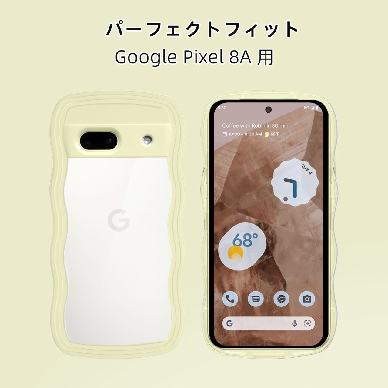 HeeNia Google Pixel 8A 対応 ケース TPUカバー 波状エッジ ソフトシェル ケース 耐衝撃 落下防止 取付簡単 耐衝撃 超軽量 薄型 おしゃれ 黄ばみなし人気 波状フレーム 可愛い 女性用 ケース Google Pixel 8A 用 (イェロー)