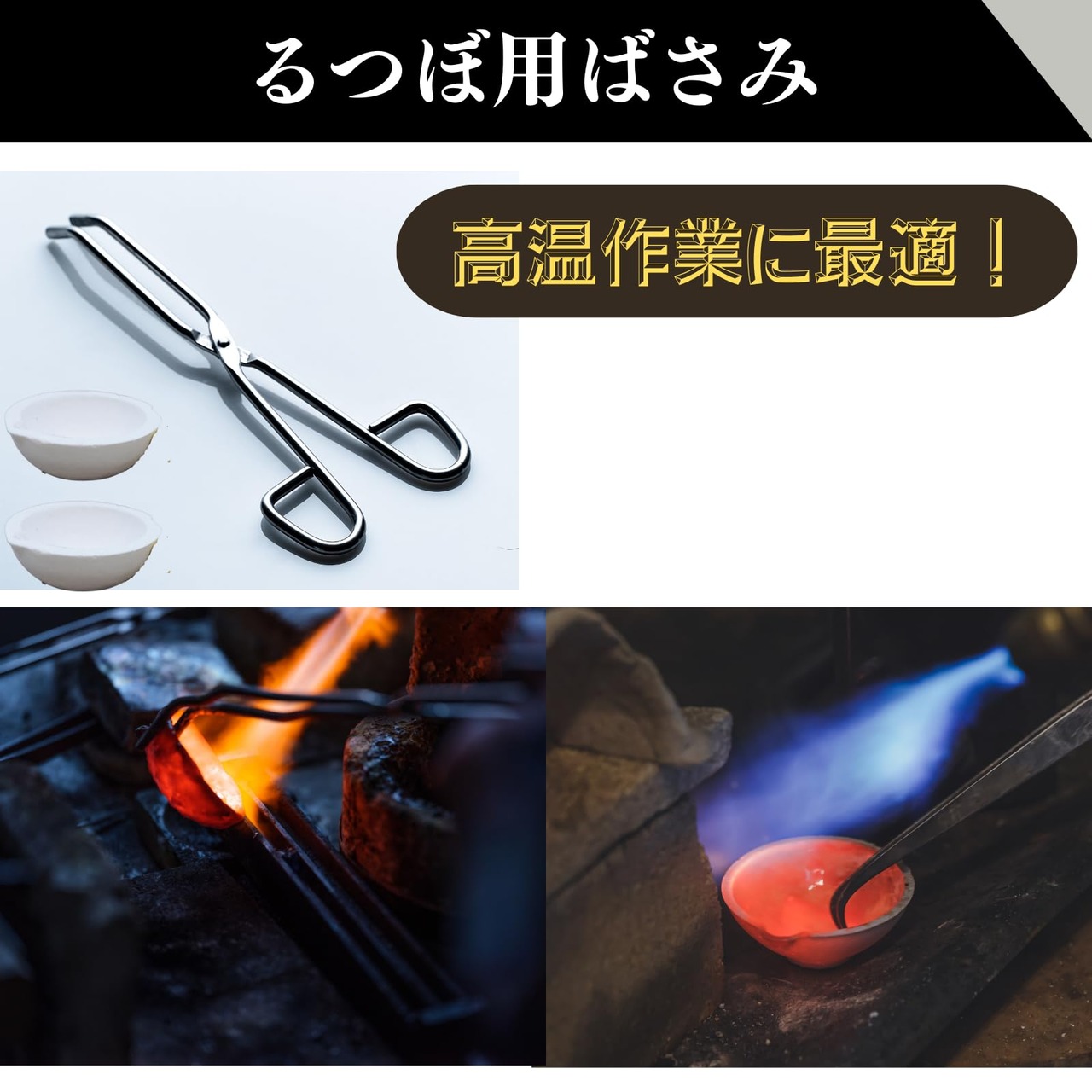 【おすすめポイント】つぼを挟むために特別に設計された長さ約35cmです。先端には滑り止めのあご設計により、坩堝を移動する際に、手をやけどから守ることができます。