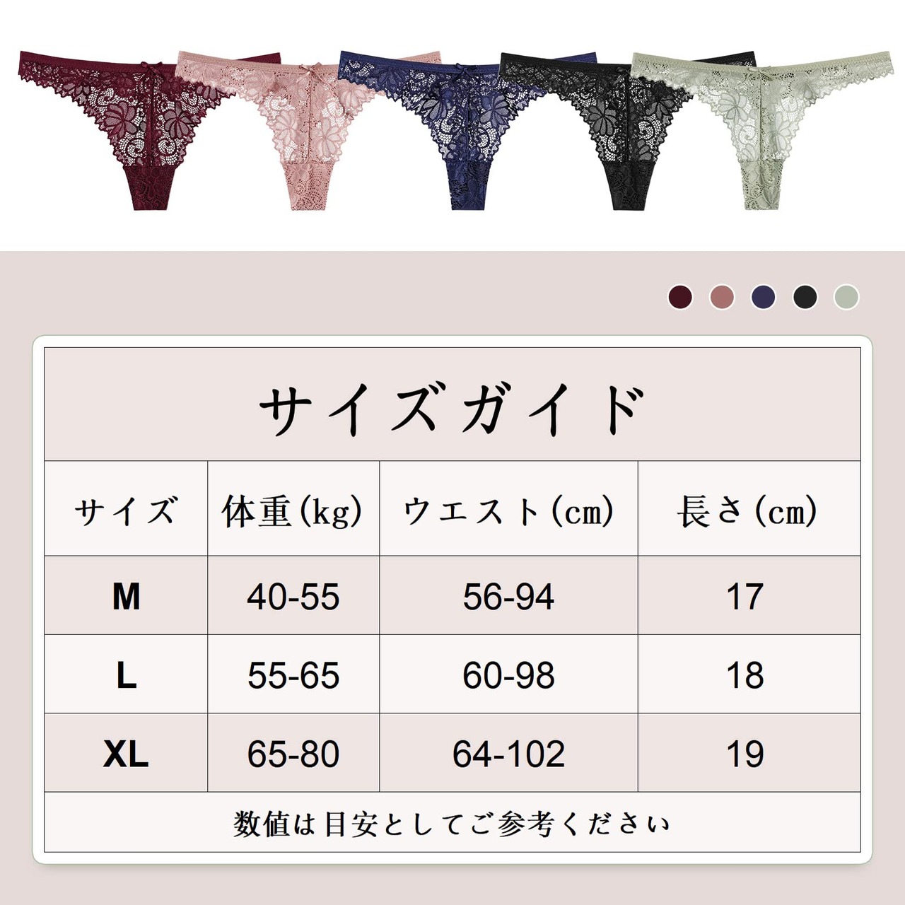 BONUMD(ララちゃん) レディース ショーツ 美尻 シームレス tバック パンツ セクシー パンティ 締め付けない 快適 通気 女性 下着 レース 透け感 5枚セット #E L