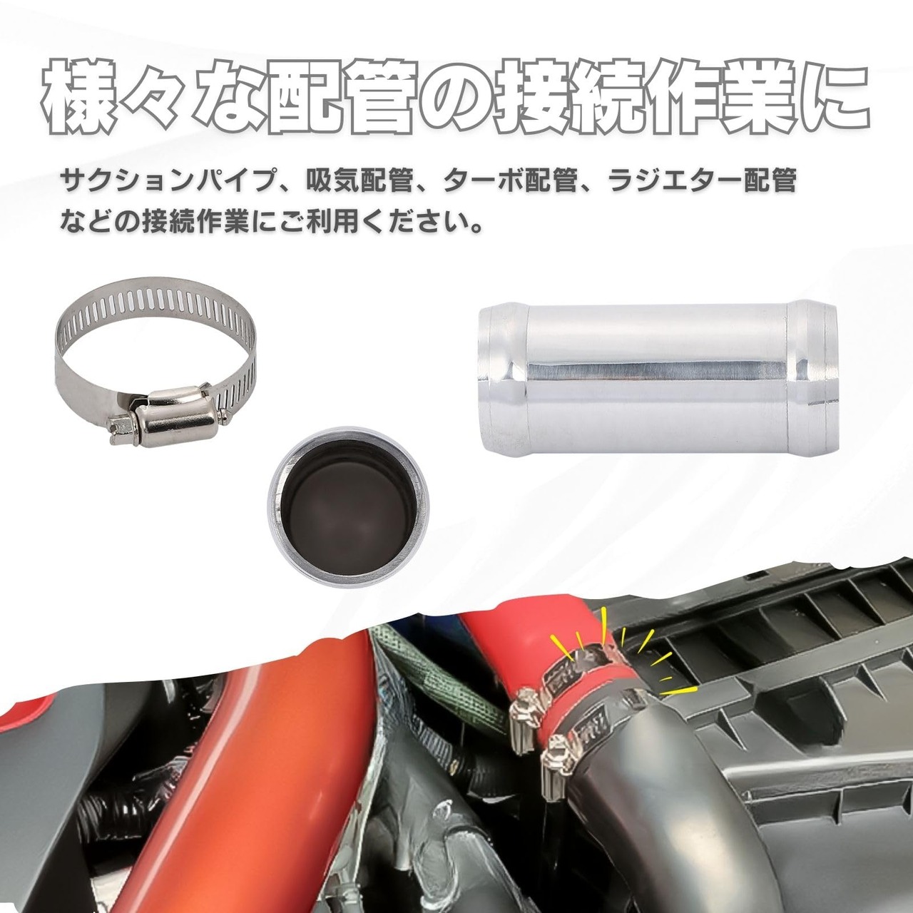 サクションパイプ、吸気配管、ターボ配管、ラジエター配管など、さまざまな配管の接続作業に最適なクランプ付きアルミパイプ ホースジョイントです。