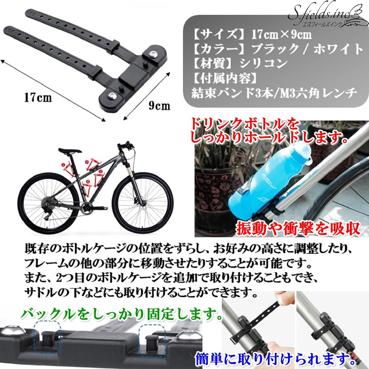 S.fields.inc ボトルケージアダプター ドリンク ホルダー 自転車用 追加後付け ロードバイク シリコン (ホワイト)