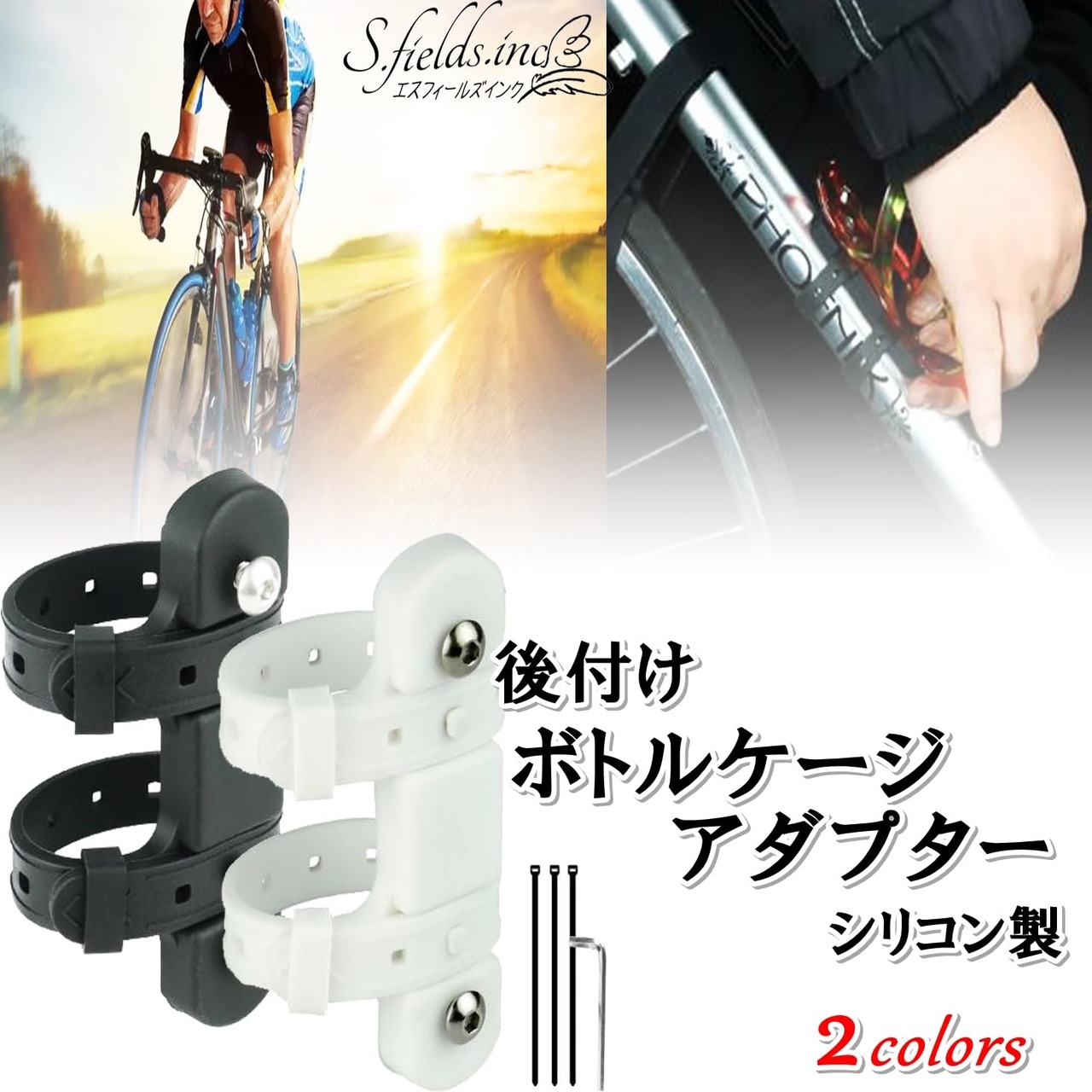 ボトルケージを後付け追加できる自転車用シリコン製ボトルケージアダプターです。ブラックとホワイトの2カラーからお選びいただけます。
