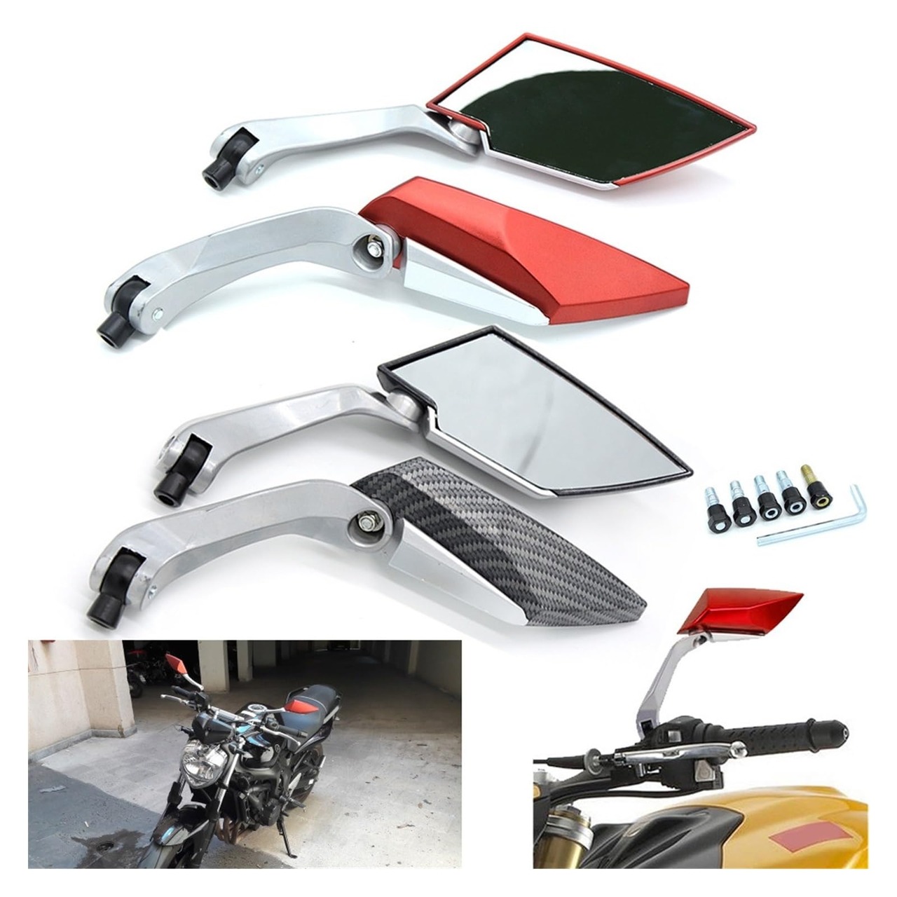 ユニバーサル 8 ミリメートルまたは 10 ミリメートルネジオートバイミラーバックミラーサイドミラー 用 CBR500R 用 CB500F 用 CB500X 2013 2014<br/><br/>8mm または 10mm ネジを使用する場合は、すべてのオートバイまたは電動自転車に適合します。<br/><br/>シェルの色: カーボン<br/>材質:ABS素材のミラーハウジングは酸化アルミニウムミラーロッドで作られています。<br/>ミラーサイズ:約150mm(5.9インチ)*58mm(2.28インチ)。<br/>ボルトサイズ: 8mm、10mm<br/>パッケージ内容: オートバイ用バックミラー 1 組。 8mm取付ボルト×2本、10mm取付ボルト×3本<br/><br/>取り付けは簡単、純正の取り付けポイントにボルトで固定するだけです。<br/><br/>超軽量、ミラー角度は自由に調整できます。 独特の不規則な形状があなたのバイクに視覚的な魅力を与えます<br/>幅広ガラスで昼も夜もクリアな視界を確保<br/><br/>注: 購入する前にオートバイのネジ直径をご確認ください。8mm ネジネジ 1 組、10mm ネジネジ 3 個をお届けします。<br/>このサイドミラーは超クリアミラーを採用しており、運転中により鮮明で広範囲のバックミラーを提供します。ミラーにより、日中や夜間の運転時に広い視野が得られます<br/>このオートバイのバックミラーは、広い視野、前方の車両や障害物の明確な視認性を提供し、より安全な運転に役立ちます。