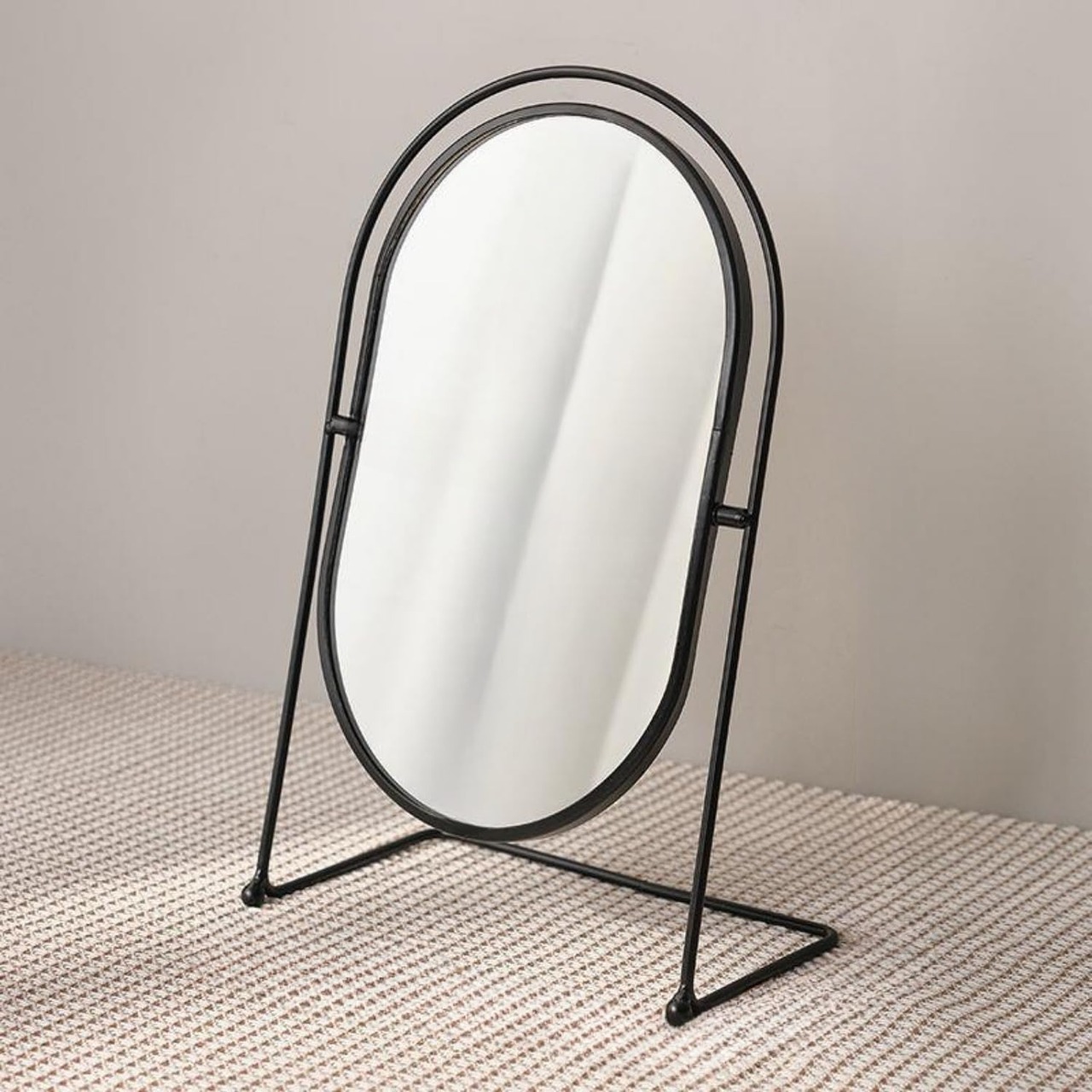 おしゃれ 卓上鏡 化粧鏡 スタンドミラー 金属 卓上ミラー メイクミラー 卓上 置き鏡 360度回転 ブラック 楕円形
