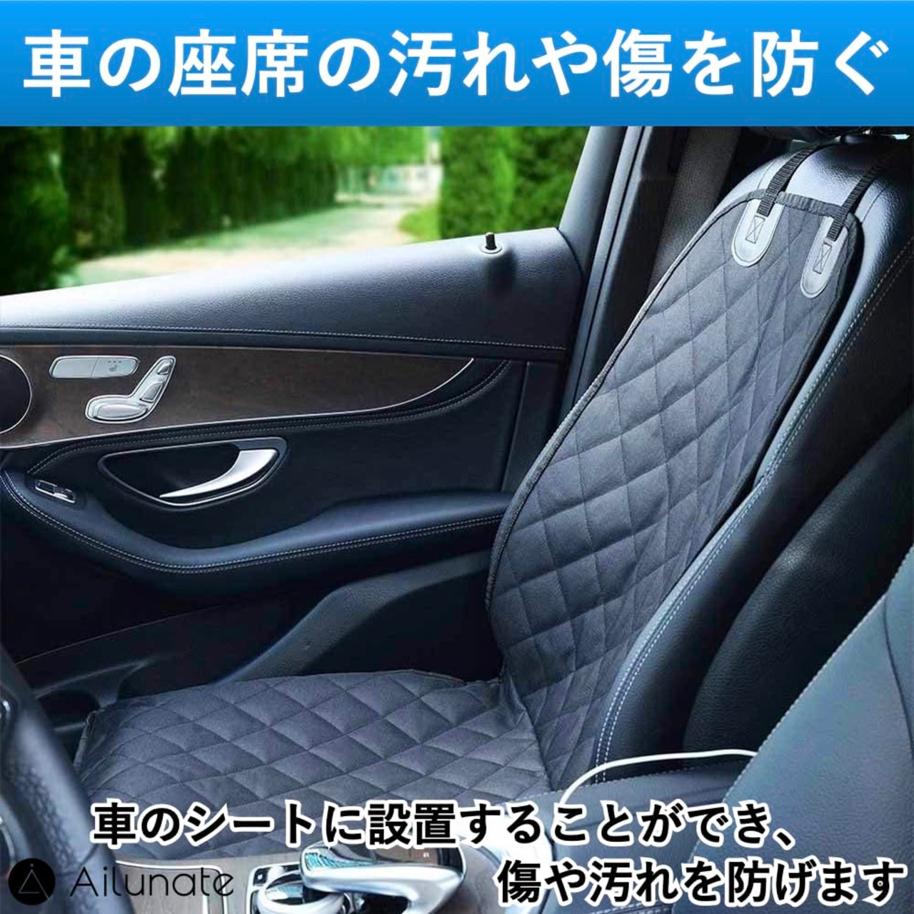 Ailunate 車 シートカバー カーシート 防水 運転席 助手席 座席 軽自動車 普通車 自動車 汚れ防止 傷防止 保護 洗える ブラック