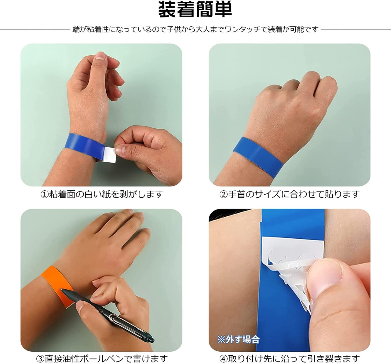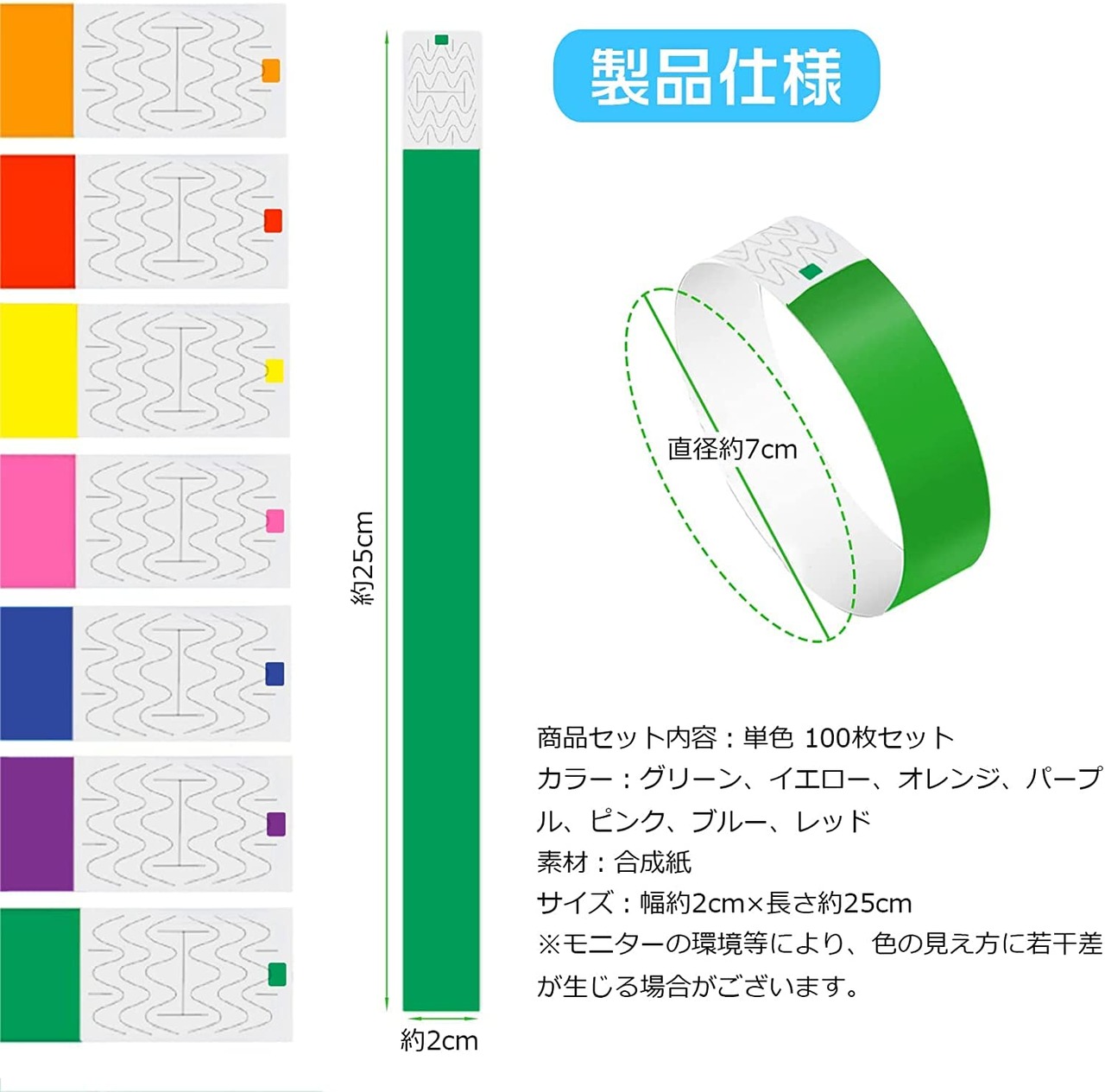 使い捨てリストバンド イベント用リストバンド 100枚 7色選択可能 防水 耐引裂き 入場 バンド テープ カラーリストバンド 人数カウント 再入場管理に ワンタッチ装着 水場でも適用 音楽ライブ 遊園地に対応 | donki