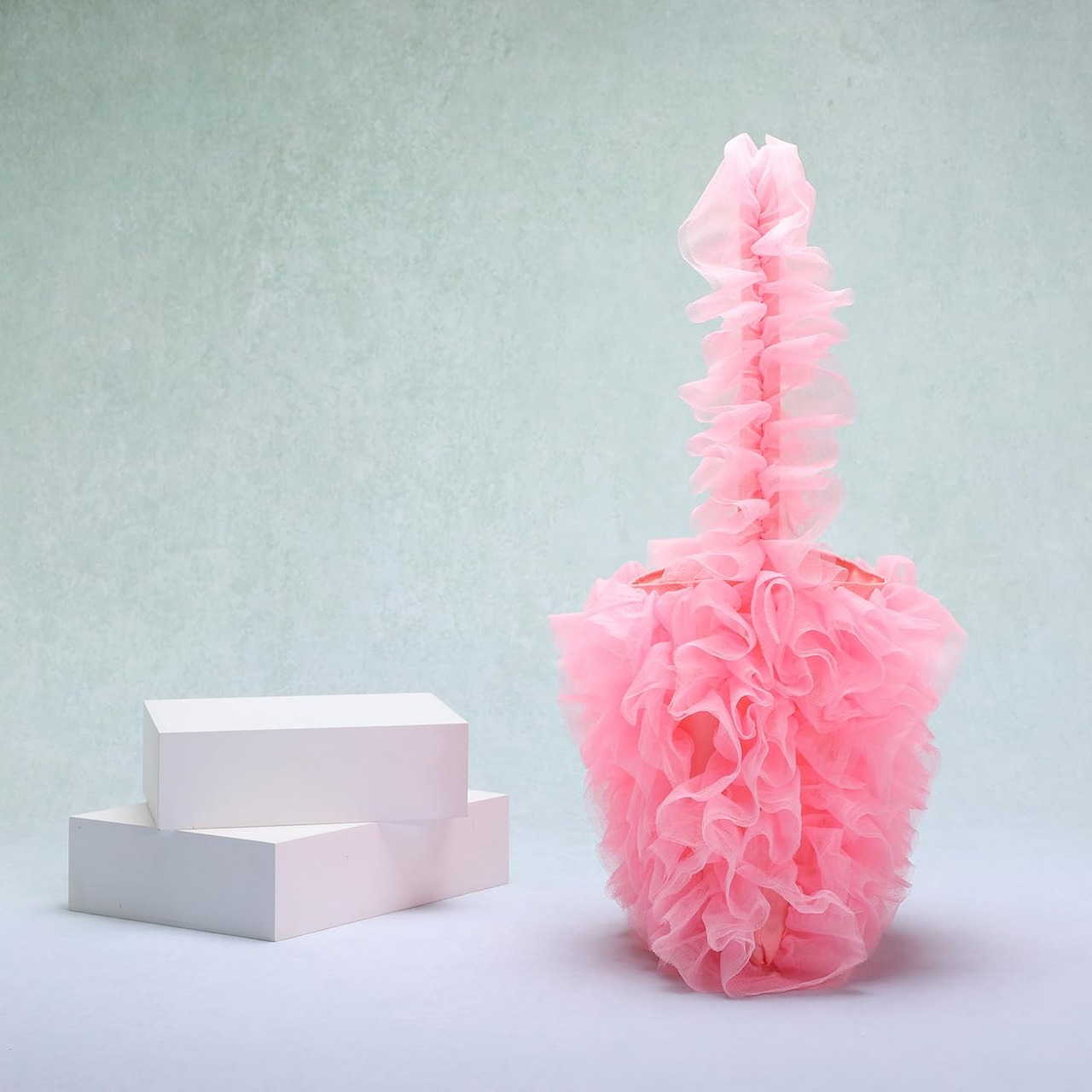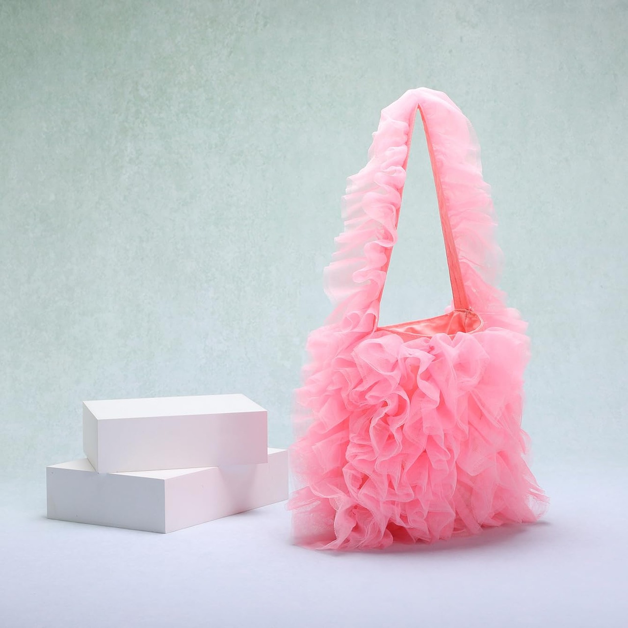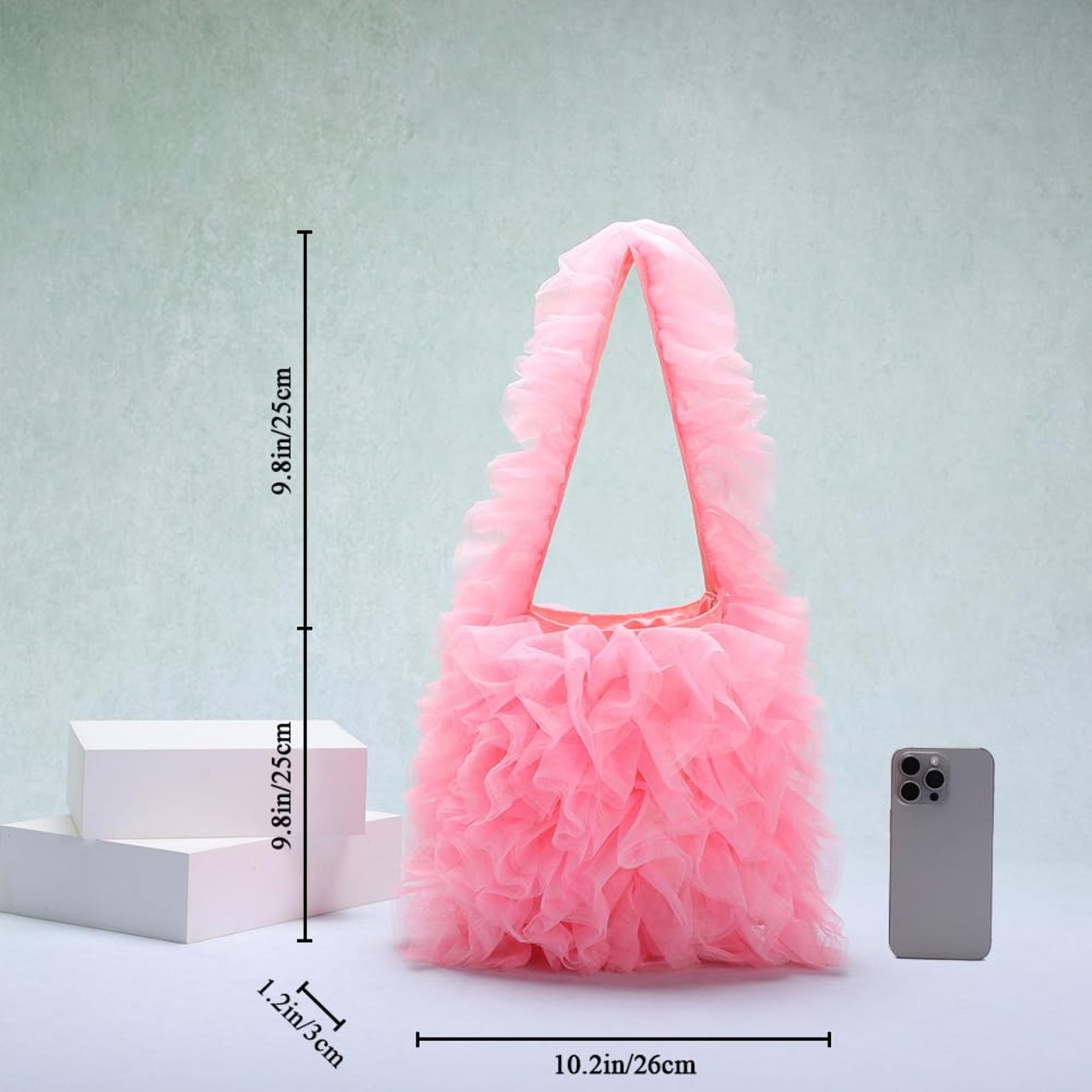 XACKWUERO レディース レースショルダーハンドバッグ ソフトガーゼ脇下バッグ レースフリルスタイル トートバッグ, ピンク