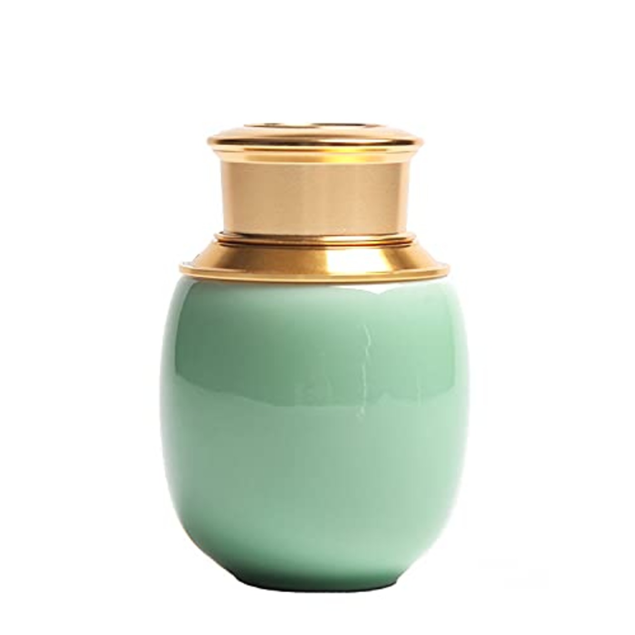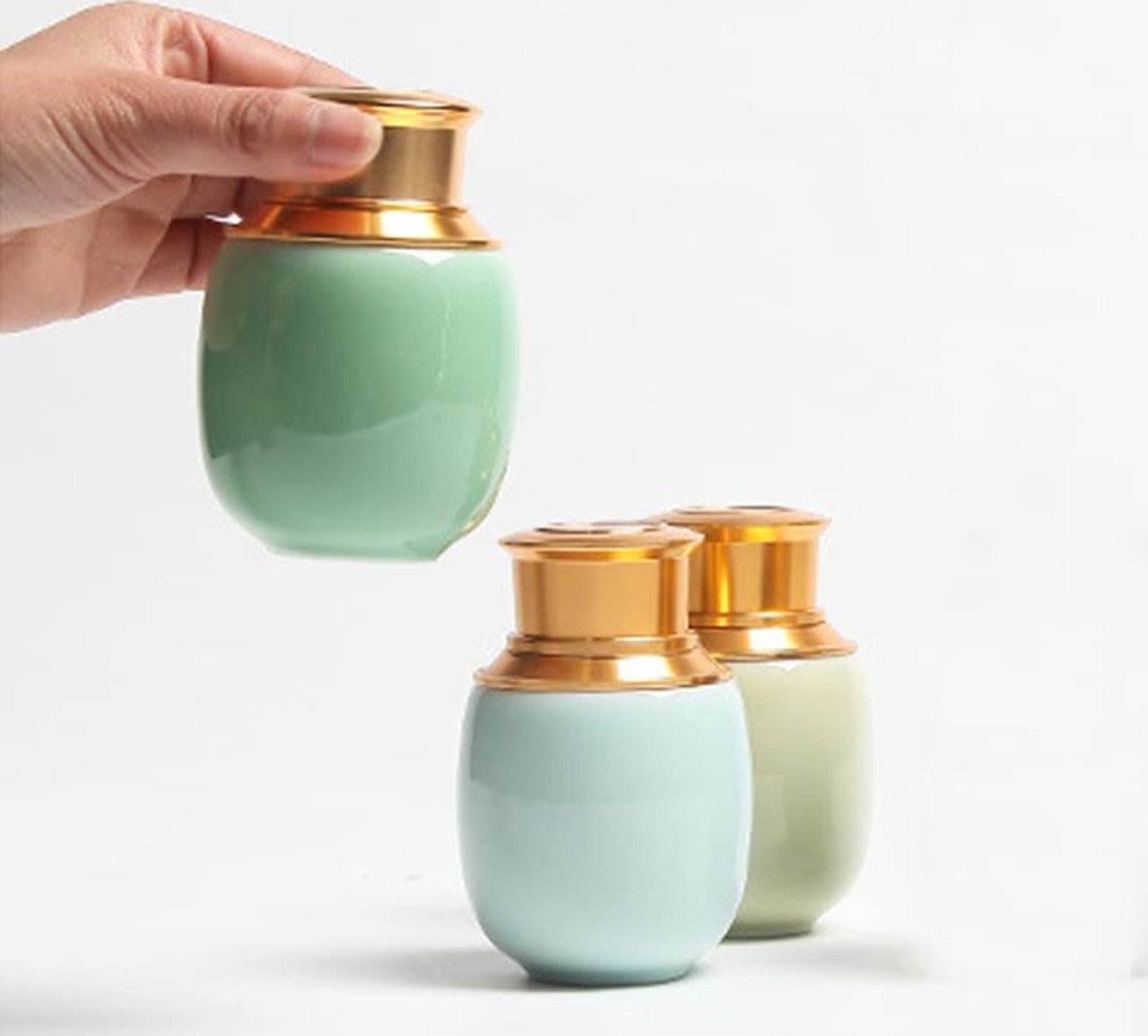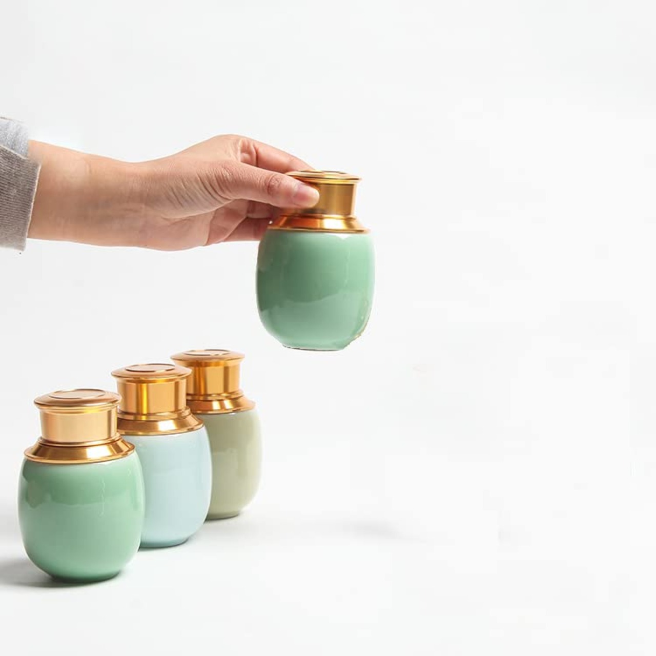 ミニ骨壷7cm*10.6cm 遺骨入れ 仏壇 仏具 納骨 分骨 手元供養 陶器製 容器 ネジ式 容量200g… (A)
