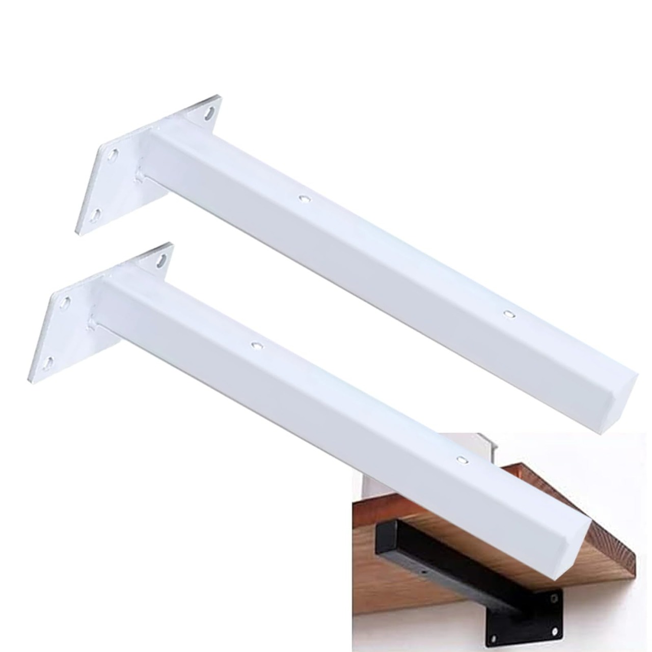 棚受けブラケット コンシールドTブラケット 棚サポート ブラケット ブラケット アイアン 耐荷重75kg セット ビス付き 角管設計 底部4穴デザイン 滑らかな表面 正負の取り付け 2個 ホワイト ブラッ 15 30 35cm ガレージ ショップ ガーデン(White,25cm)