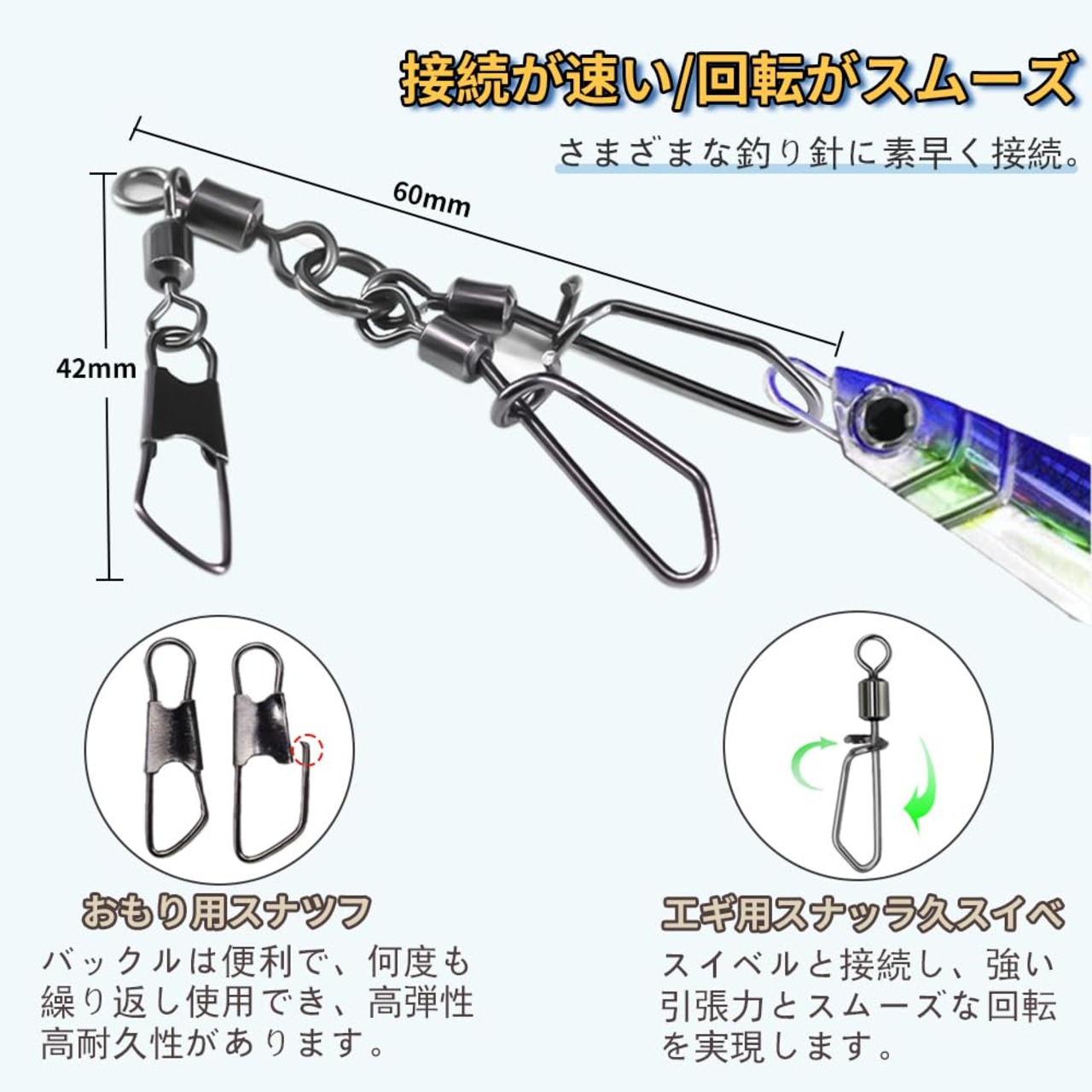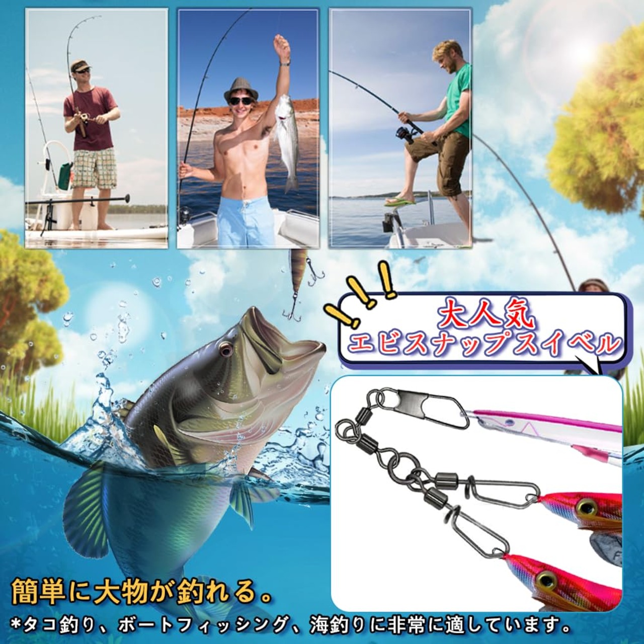 本製品は高強度規格設計を採用しており、船釣りや陸釣りのシーンに適しており、釣り中の混乱を効果的に軽減します。強力なエビスイベルピンは、フックや回転ベルとしてだけでなく、さまざまな釣りのニーズにも対応し、優れた使用体験を提供します。