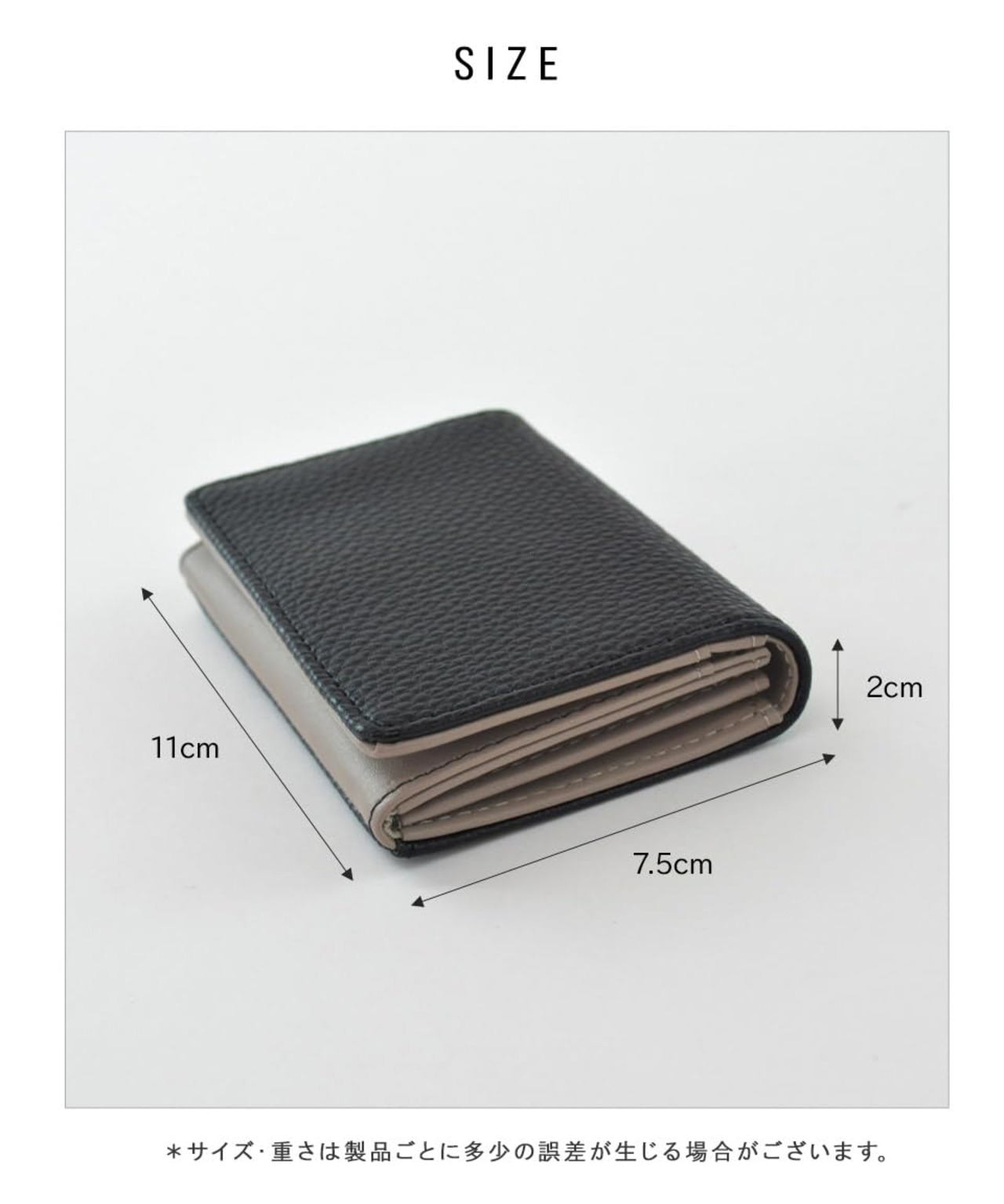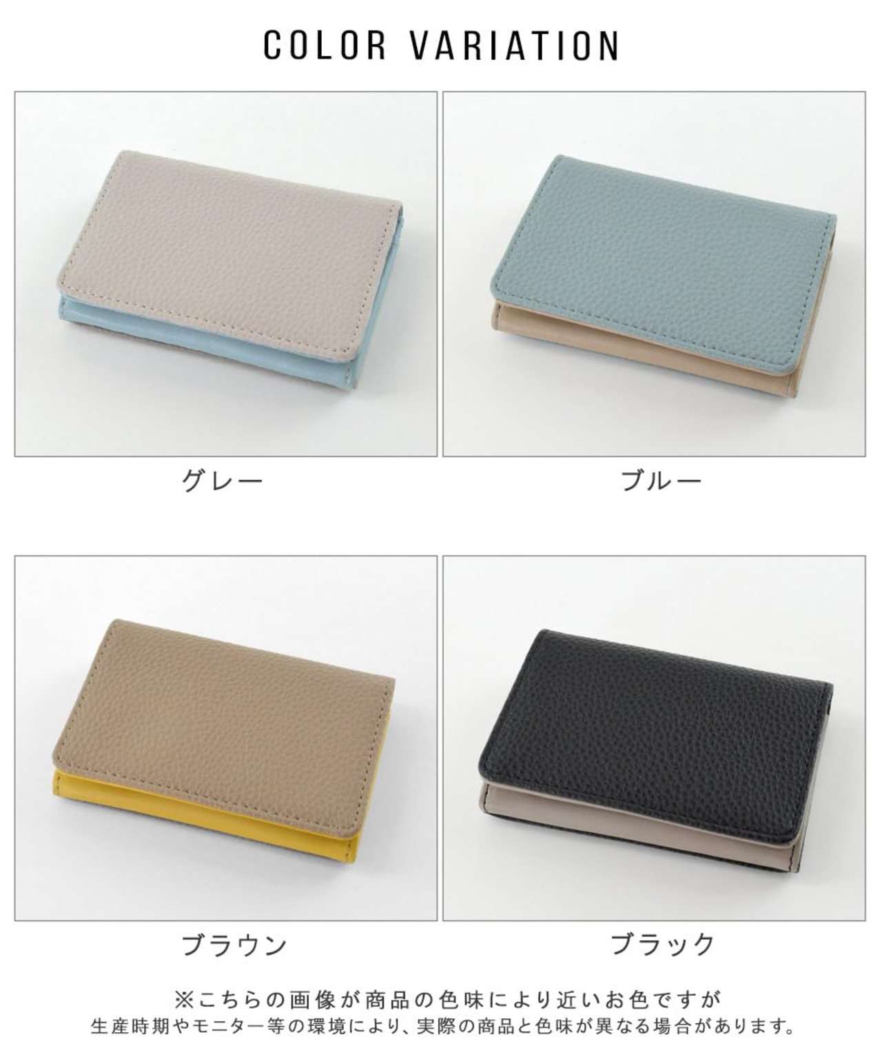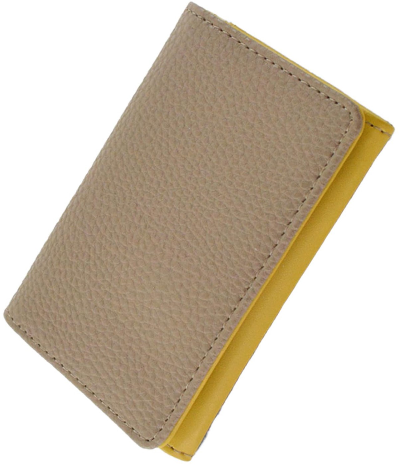 【サイズ】横幅:11cm 高さ:7.5cm マチ:2cm <br><br>【素材】合成皮革<br>【仕様】開閉:マグネットボタン内側:カードポケット×3外側:-<br>【重さ】約50g<br>・シボ感が高見えする名刺入れ。<br>・シンプルな中に遊び心のあるバイカラーデザイン。<br>・開閉はマグネットボタンになっており、バッグの中でも開かず安心♪<br>・メイン収納には仕切りが付いており、名刺を分けて収納することが可能!<br>・カードポケットも3つ付いています。<br>・幅広い世代でお使いいただけます。<br>・名刺入れとしてはもちろん、カードケースとしても◎