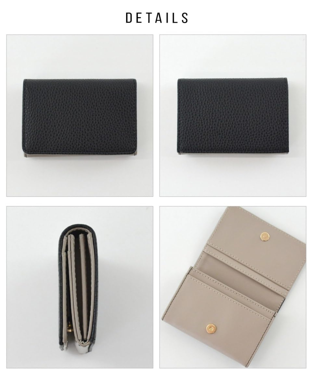 ・シボ感が高見えする名刺入れ。・シンプルな中に遊び心のあるバイカラーデザイン。・開閉はマグネットボタンになっており、バッグの中でも開かず安心♪・メイン収納には仕切りが付いており、名刺を分けて収納することが可能!・カードポケットも3つ付いています。・幅広い世代でお使いいただけます。
