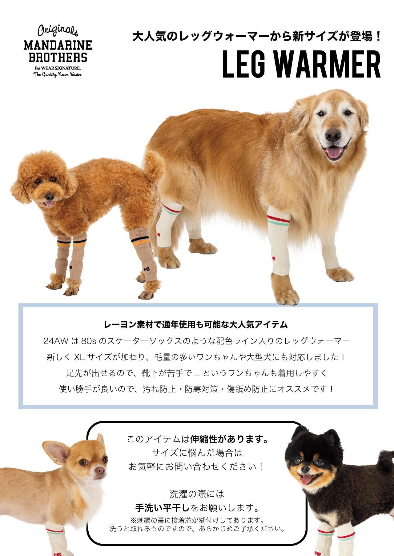 MANDARINE BROTHERS マンダリンブラザーズ レッグウォーマー LEG WARMER 犬 靴下 (BEIGE, M)