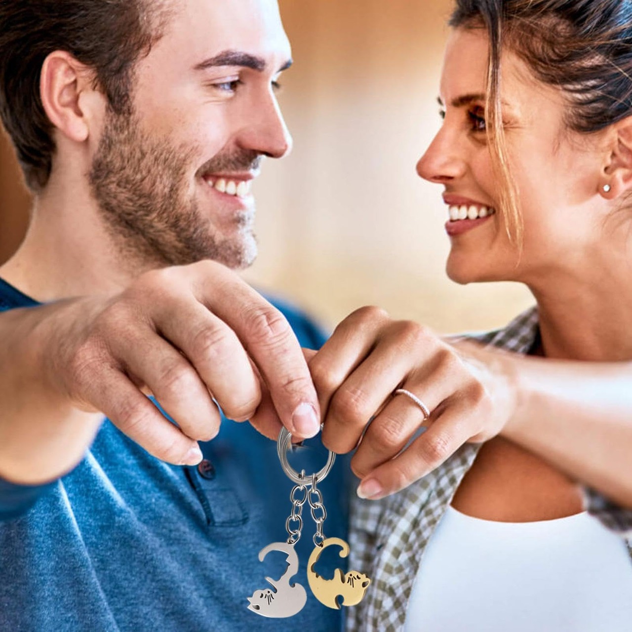 ♫幅広い用途: このカップルキーチェーンは、スタイリッシュなネックレスペンダントからキーチェーンの装飾にシームレスに移行する多目的デザインです。幅広い用途と多彩な魅力で、あらゆるシーンに最適です。