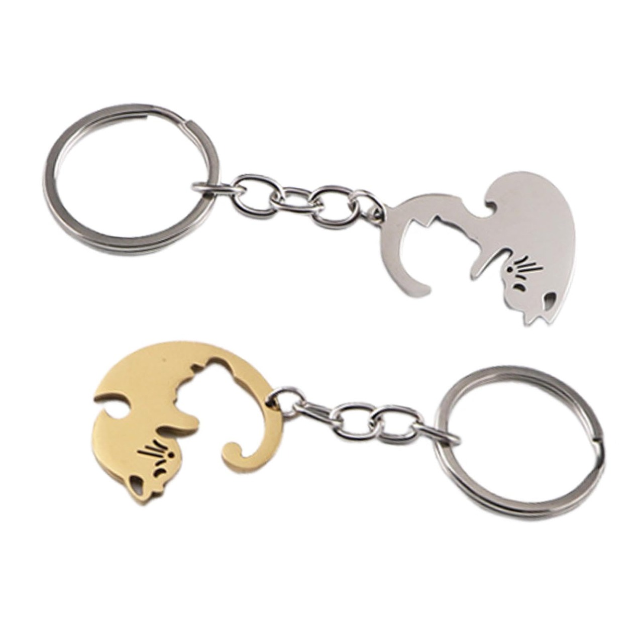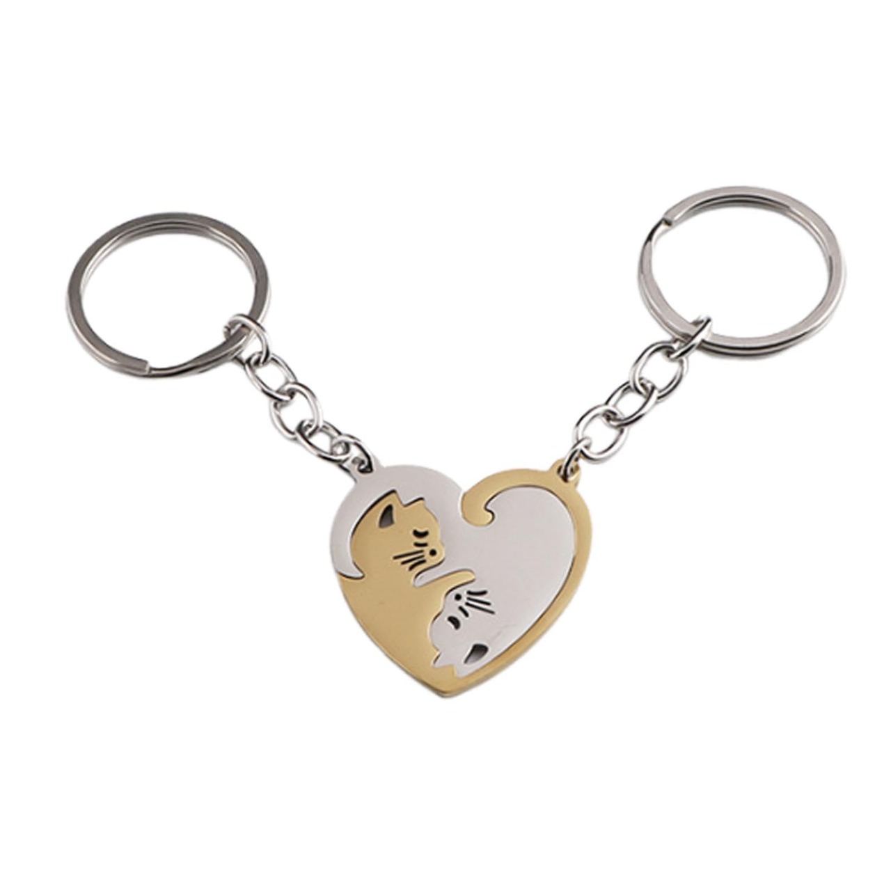 カップル猫キーホルダー、お揃いのキーホルダー |カップル小物ポータブルステンレススチールキーホルダーハート型スプライシング猫陰陽猫キーホルダー 黒と白のマッチングカップルキーホルダー - 彼と彼女のためのハート型キーホルダー
