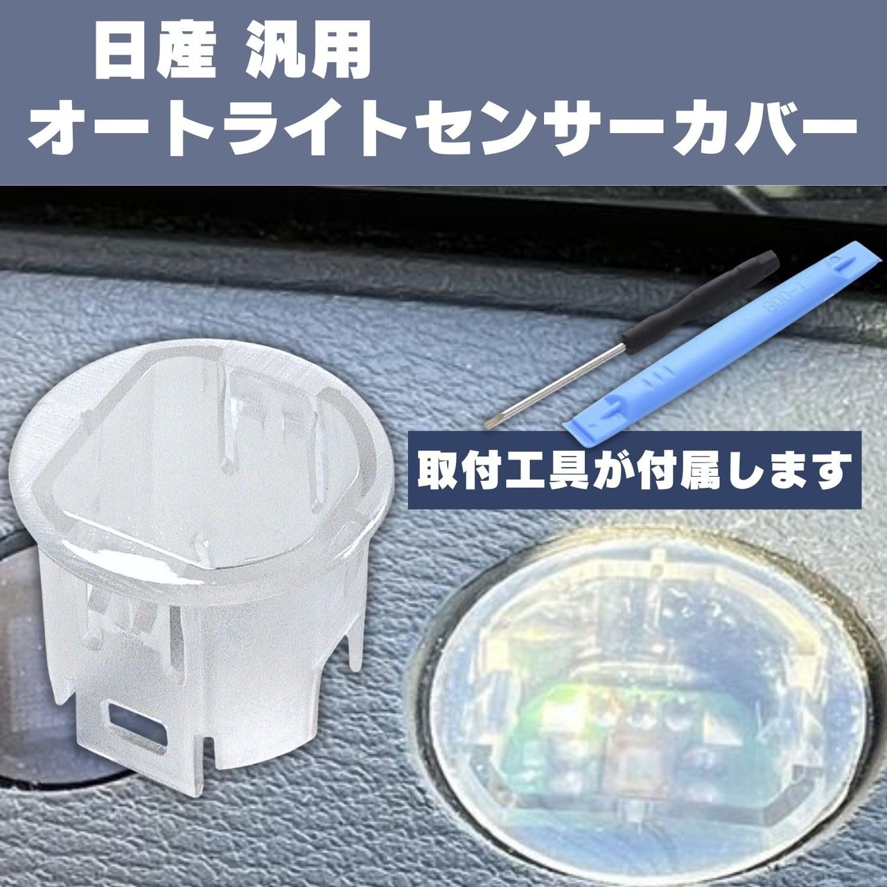 日産 オートライト センサーカバー ライト 感度調節 クリア 半透明 汎用 自動調光 コンライト 透明 レンズ