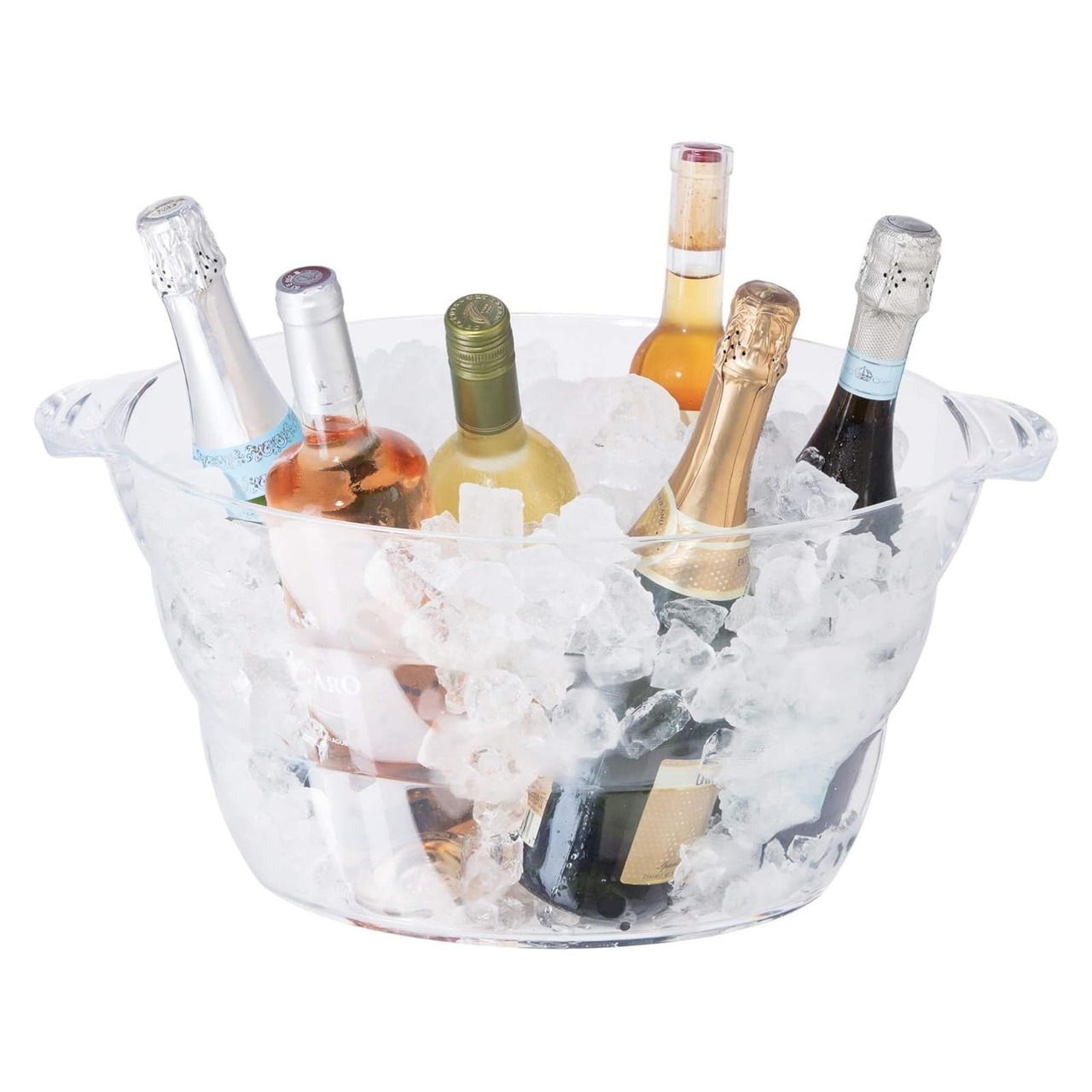 アクリル製オーバルパーティータブ - 透明飲料クーラー ハンドル付き ワインクーラー ビールチラー ドリンクに最適なパーティータブ 屋内外バー用アイスタブ使用 18.5インチ x 11インチ (L)