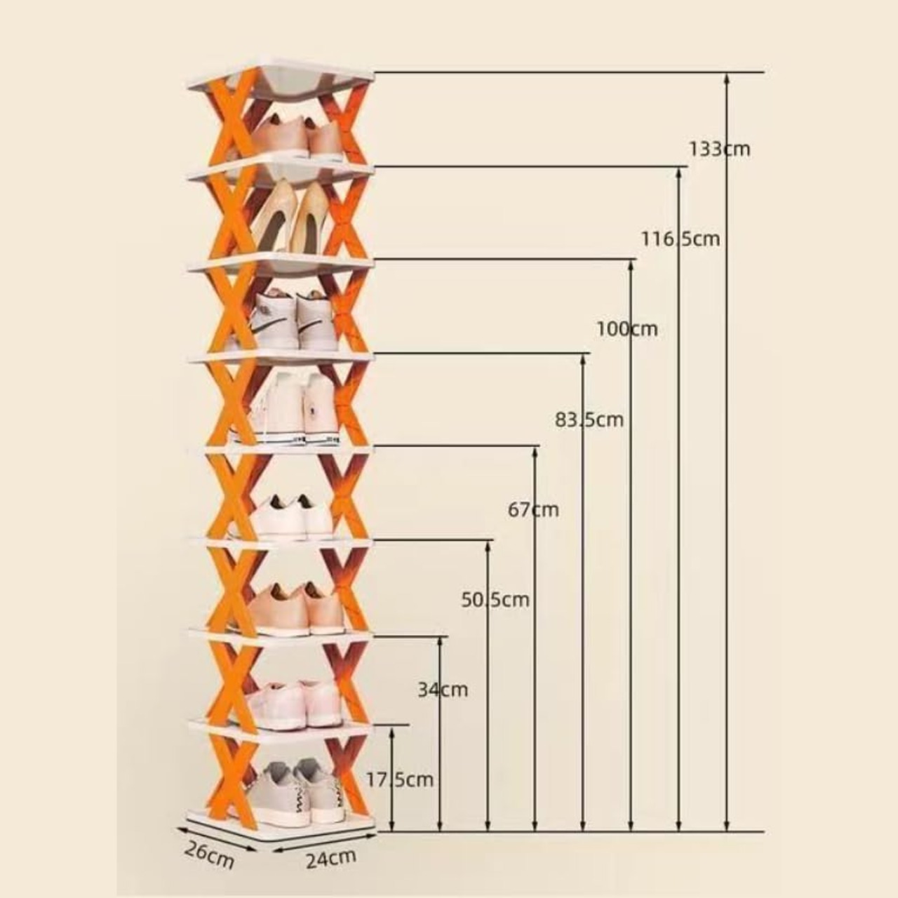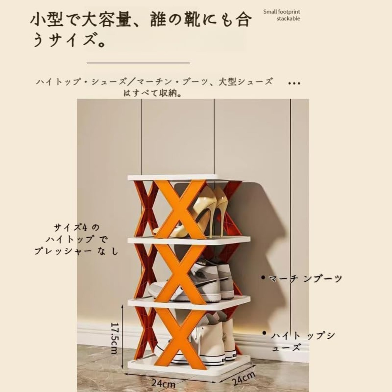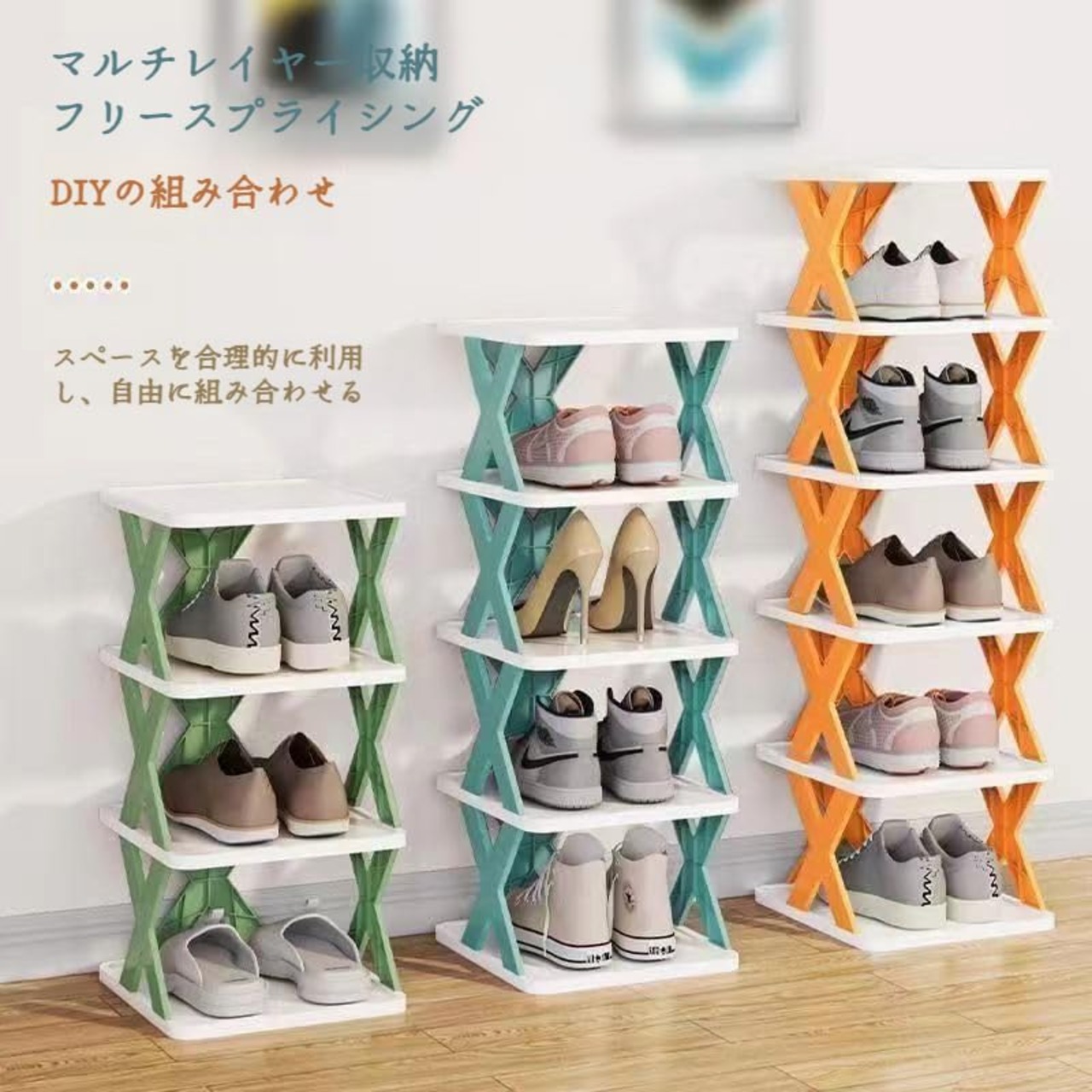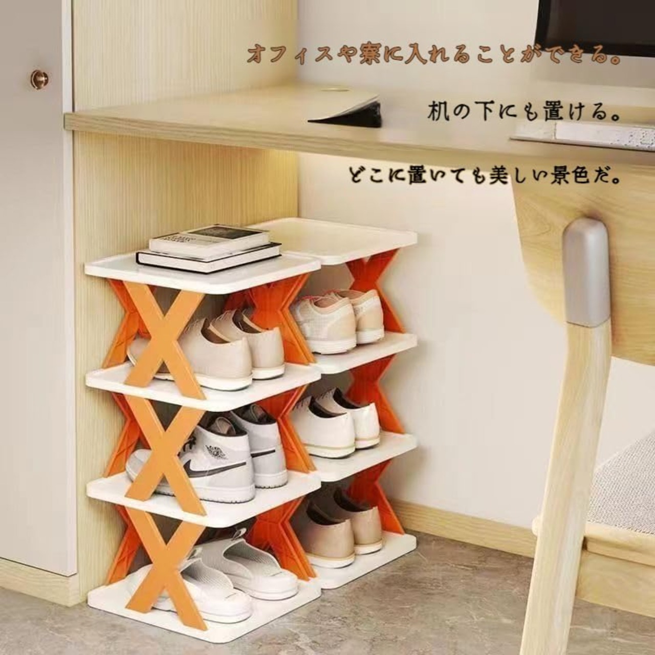 【商品名】<br/>シューズラック折り畳み式 斜め 靴収納ラック 省スペース<br/><br/>●マルチレイヤーデザイン 収納スペース<br/>●防塵布がホコリをブロックし 靴をすっきりさせる<br/>●安定した構造 強力な耐荷重性<br/><br/>【製品詳細】<br/>1 多層設計 複数の靴を置くことができ 家族のニーズを満たすために6層構造 防塵布の設計 効果的にほこりをブロックし 靴をきちんと整頓しておく 安定したX型ブラケットを採用し 構造がしっかりしていて転倒しにくい<br/>2 コンパクトなデザインで 狭い家庭での使用に適しており 垂直スペースをフル活用します 多機能収納 バッグ 鍵などの小物を置くことができます 高品質のプラスチック材料 軽量で耐久性があり 美しく実用的です<br/>3 靴のホコリの蓄積を防ぎ 清潔で衛生的な状態を保ちます 安定した構造で揺れず 耐荷重が強い 取り付け簡単 工具不要 3秒で素早く組み立てられます<br/>4 家庭用玄関や廊下などの狭いスペースでの使用 学生寮のベッドサイド オフィスの玄関収納 子供やペットがいる家庭に最適で 環境を整頓できます<br/>5 高品質のプラスチック材料 軽量で耐久性があり 美しく ファッショナブルです 白とオレンジ色のマッチング 様々な家庭のスタイルに適しています 穴のない接着剤 便利なインストール 痕跡を残さない<br/><br/>【親切なヒント】<br/>1 安全・安定性を確保するため シューズラックを正しく折りたたんでください<br/>2 シューズラックを正しい位置に置き 衝撃による損傷を避ける<br/>3 あなたの必要性に従って右の靴の棚のサイズそして層を選ぶ<br/><br/><br/>※※※<br/>私たちのチームは、年中無休でご質問にお答えしています<br/>※※※