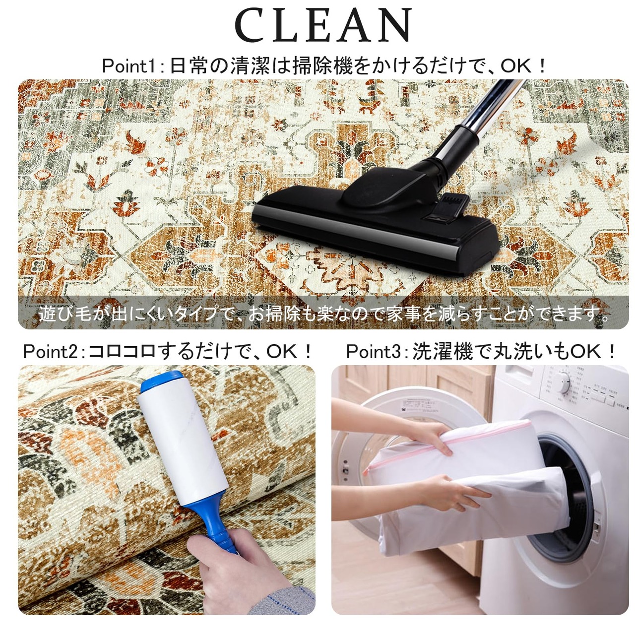 カーペット 洗える 140х200cm ラグ オールシーズン適用 ペルシャ風 じゅうたん 約2畳 滑り止め 防音 寝室 リビング ラグマット 抗菌防臭 耐磨耗性 軽量 ホットカーペット対応 メダリオン柄 カーキ