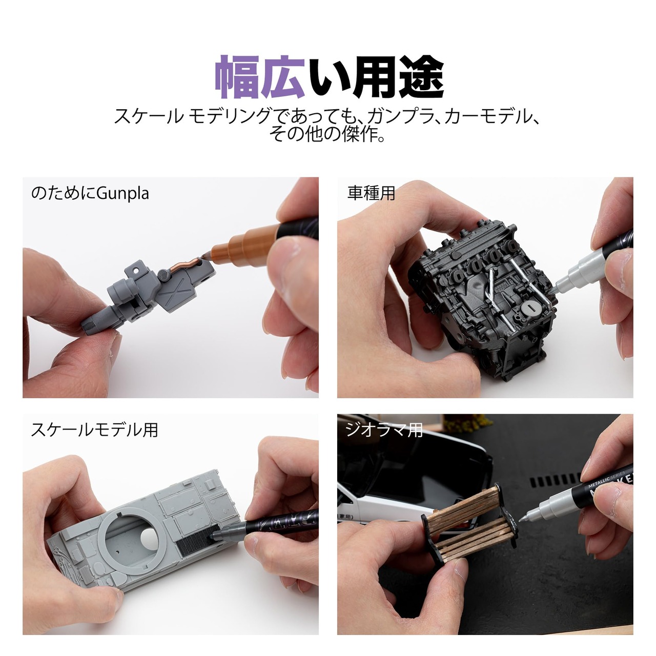 幅広い用途:スケールモデル、模型ロボットです、カーモデル、その他のクリエイティブな作品に取り組む際、これらのマーカーはどんなプロジェクトにも対応できる多機能なツールです。各マーカーには色を示すキャップとラベルが付いており、効率を高め、毎回正しい色を選ぶことができます。