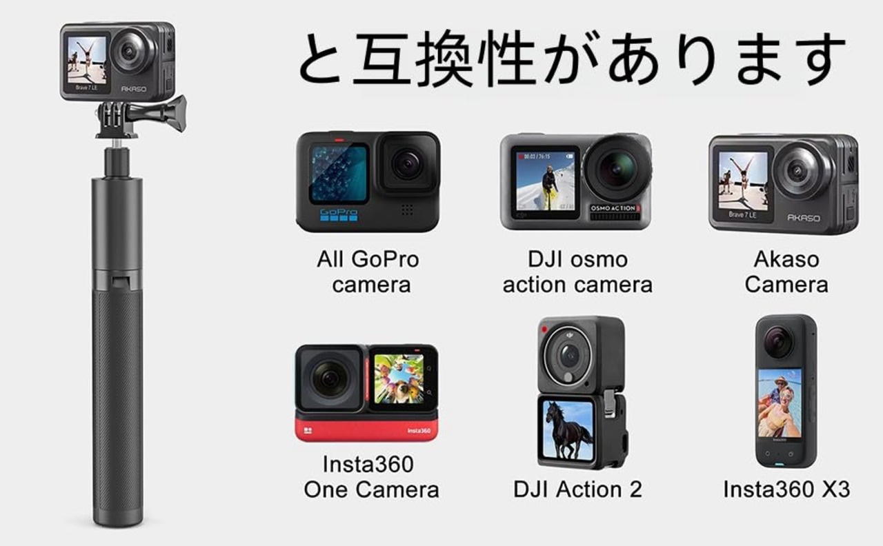 幅広い対応:Insta360の各種カメラに対応しており、1/4インチネジで取り付けられます。