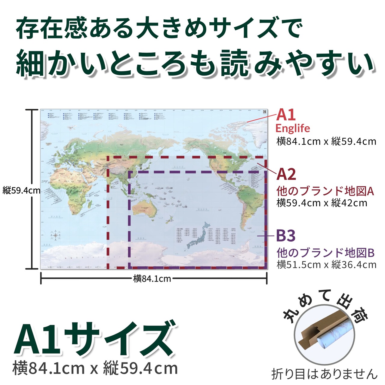 大きめサイズで細かいところも読み易い。A1サイズ (横84.1cm x 縦59.4cm)。
