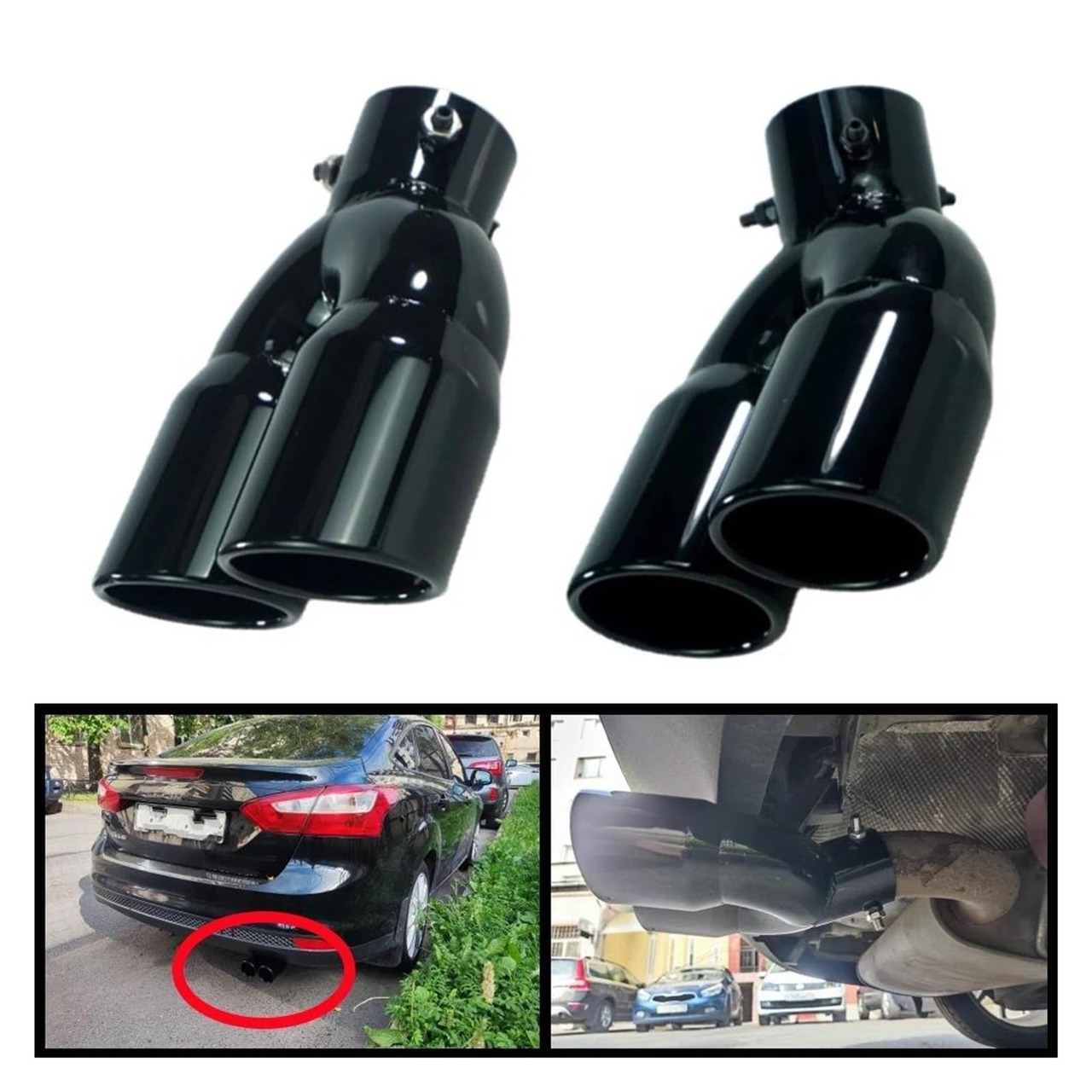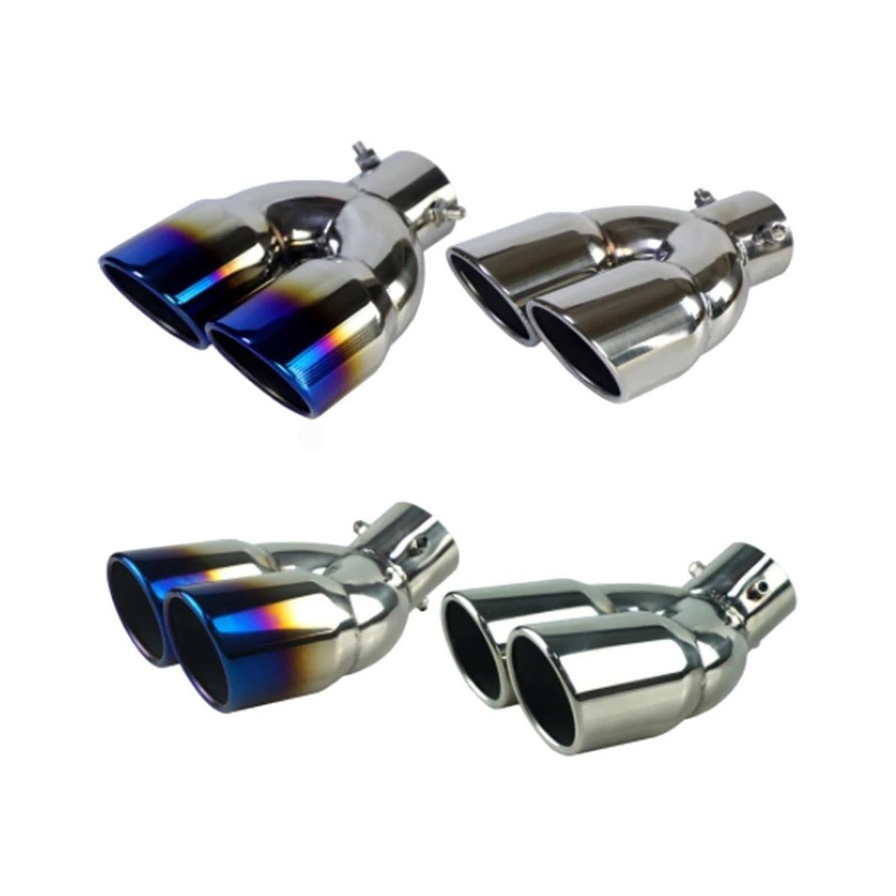 テールパイプ ユニバーサルカーアクセサリー 63 ミリメートル車入口ダブルバレルリア排気チップテールパイプマフラーブラックチタン出口ステンレス鋼 排気管(Silver Z)